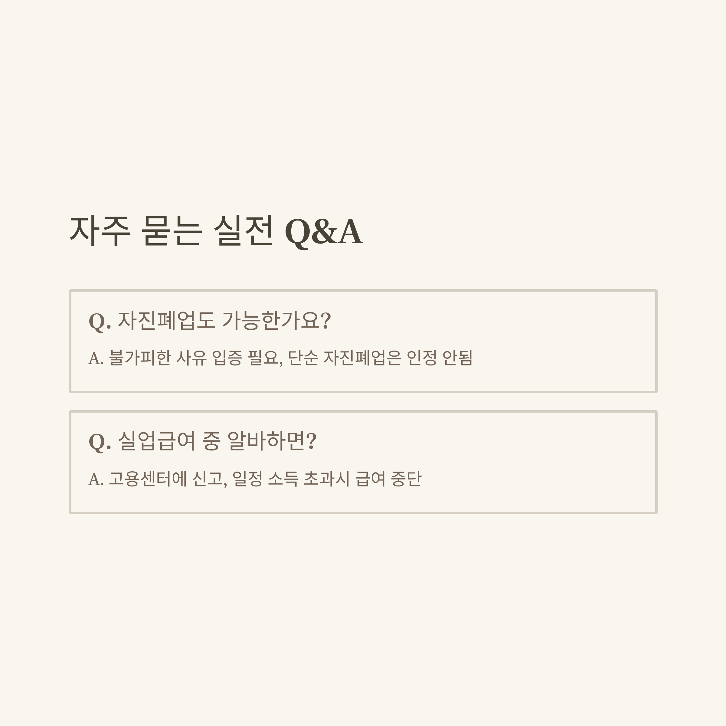 Q1. 개인사업자 실업급여, 고용보험에 가입해야만 받을 수 있나요?