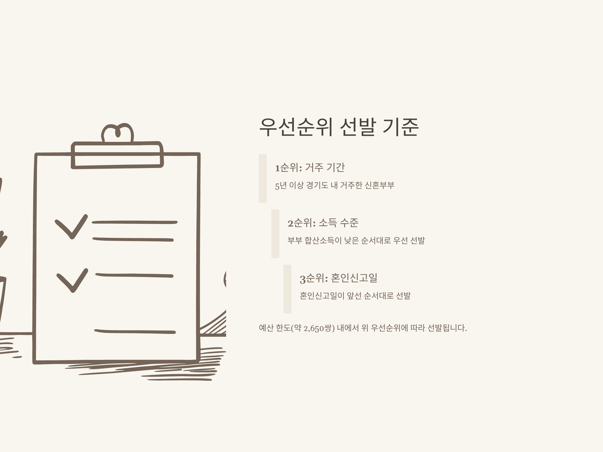 제가 처음 '경기도 신혼부부 100만원 지원' 소식을 들었을 때, 솔직히 반신반의했어요. 주변에서도 ‘진짜 주는 거 맞냐’며 궁금해하더라고요. 직접 경기도청 공식 홈페이지와 고객센터에 문의해보니, 올해 한시적으로 시행되는 신혼부부 결혼자금 지원사업이었습니다. 이 지원금은 경기도 내 신혼부부에게 한 가구당 100만원씩 결혼자금 명목으로 지급됩니다. 단, 예산 규모와 우선순위 기준이 정해져 있어서 무조건 신청만 하면 다 받는 건 아니더라고요. 신청자격이 맞고, 선착순/우선순위에 들면 받을 수 있다고 명확하게 안내받았습니다. 실제로는 부부합산 소득, 거주기간, 혼인신고 시점 등 조건이 까다로운 편이었습니다. 이런 부분, 신청 전에 꼭 체크하셔야 합니다. 경기도 신혼부부 지원금 사업 공식 안내는 경기도청 공식 홈페이지와 경기도 청년포털에서 확인할 수 있습니다.