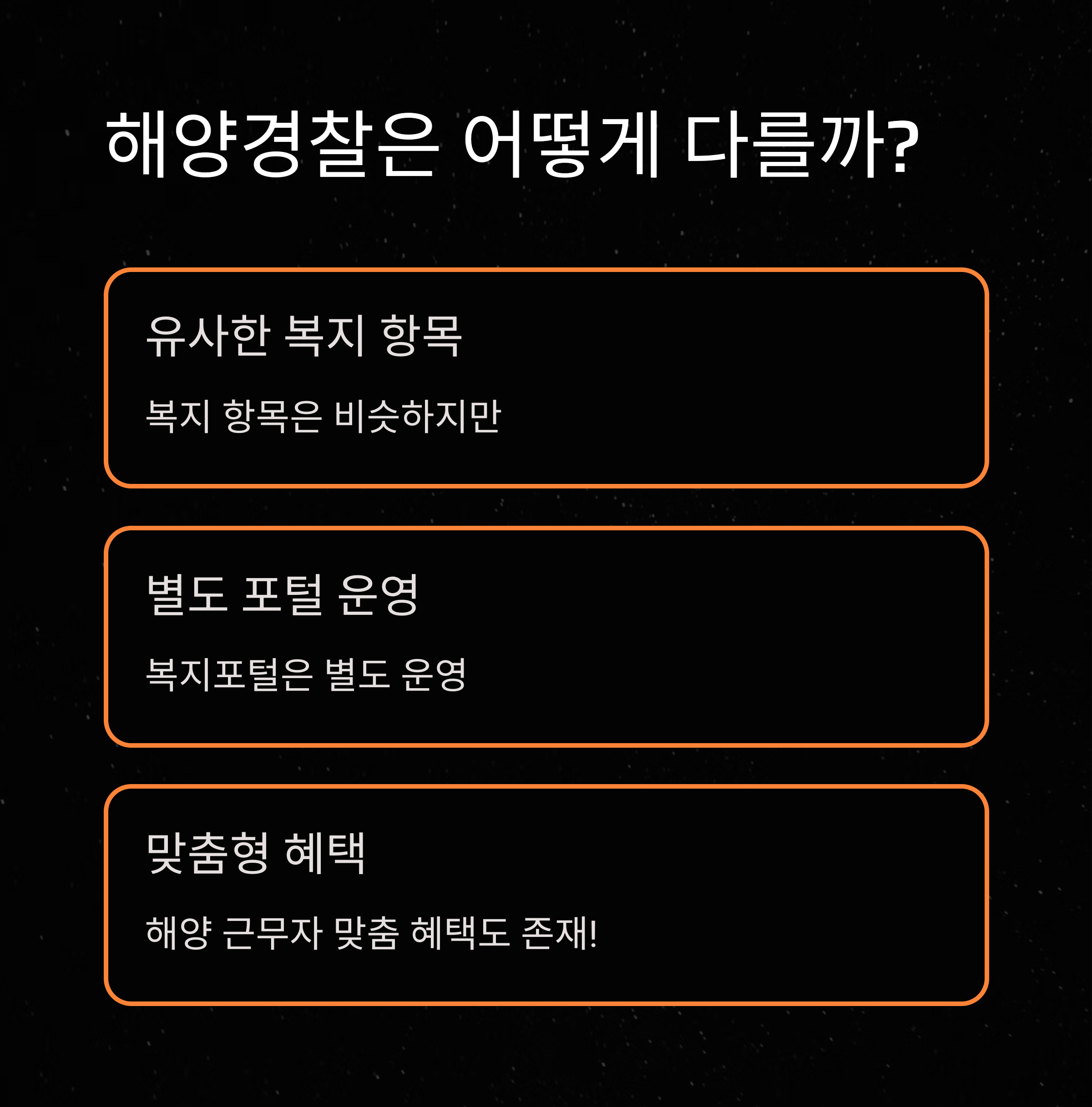 Q3. 해양경찰도 동일한 복지를 받나요?