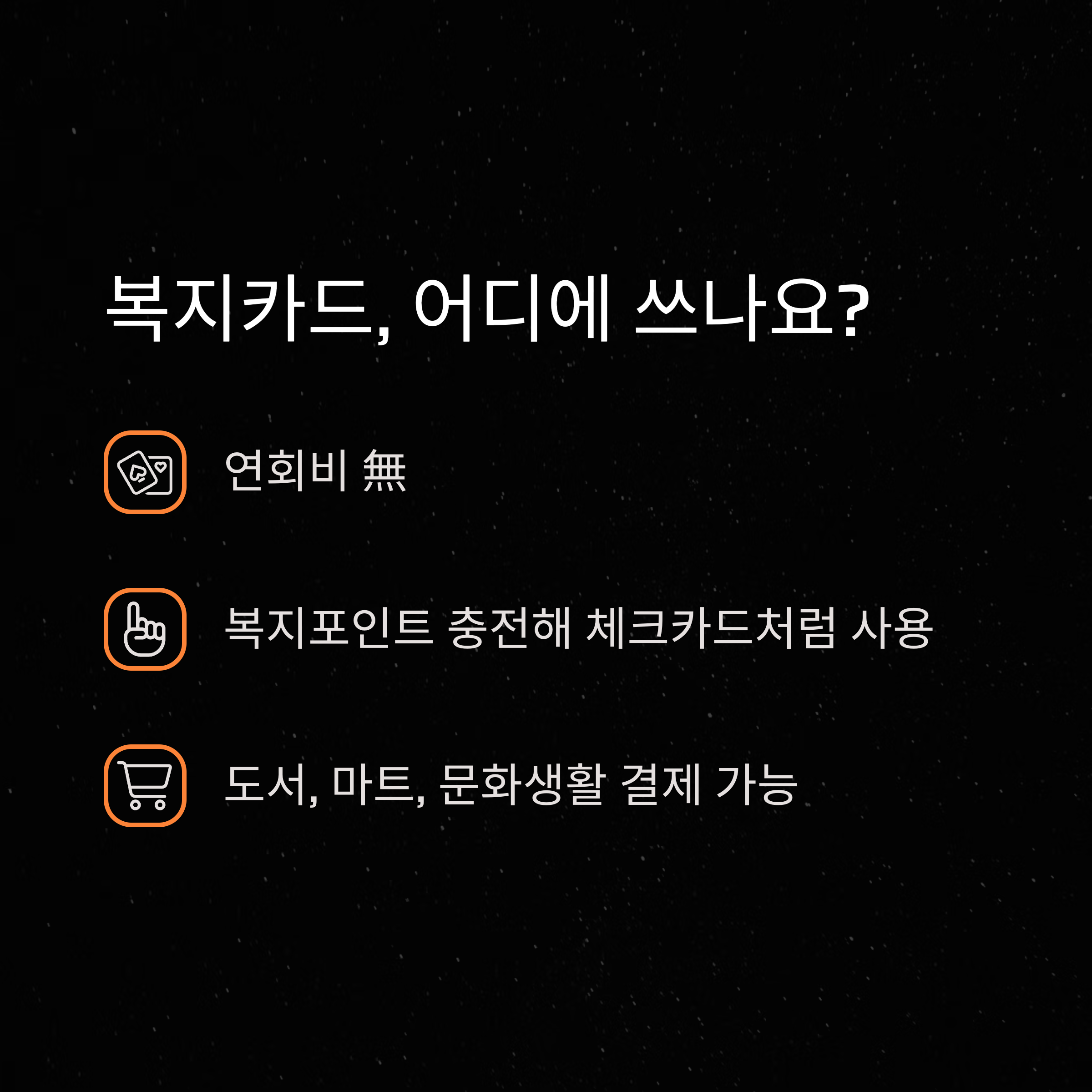 | 복지카드 | 복지포인트 전용 카드로 전국 사용 가능 |