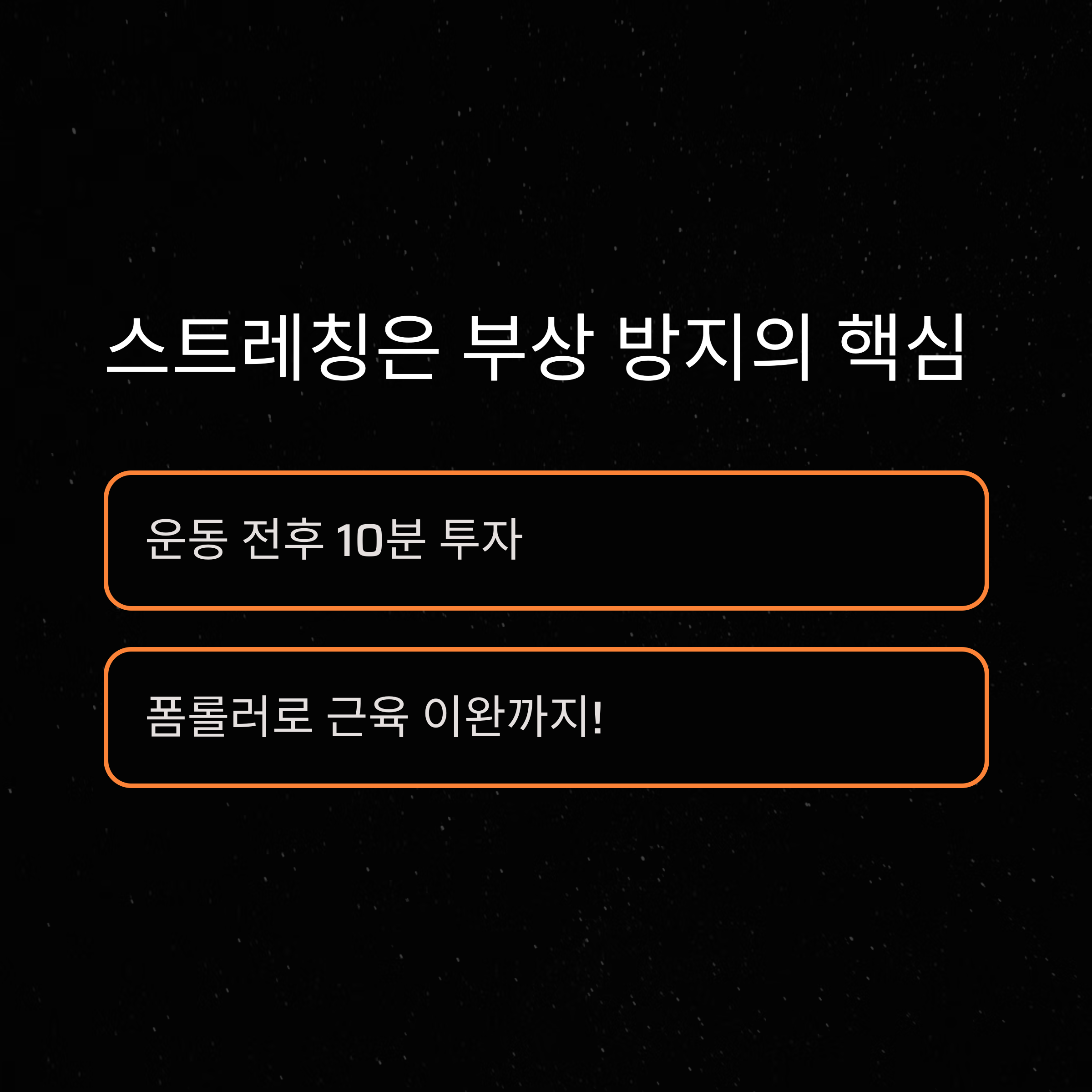경찰특공대 준비 과정에서 저는 어깨 통증으로 1주일간 훈련을 중단해야 했던 경험이 있습니다. 체력 향상에만 집중하고 스트레칭을 소홀히 했던 결과였습니다. 그 뒤로는 매일 10분 이상 동적·정적 스트레칭을 병행했고, 폼롤러로 근막이완까지 하면서 부상 없이 훈련을 마무리할 수 있었어요.