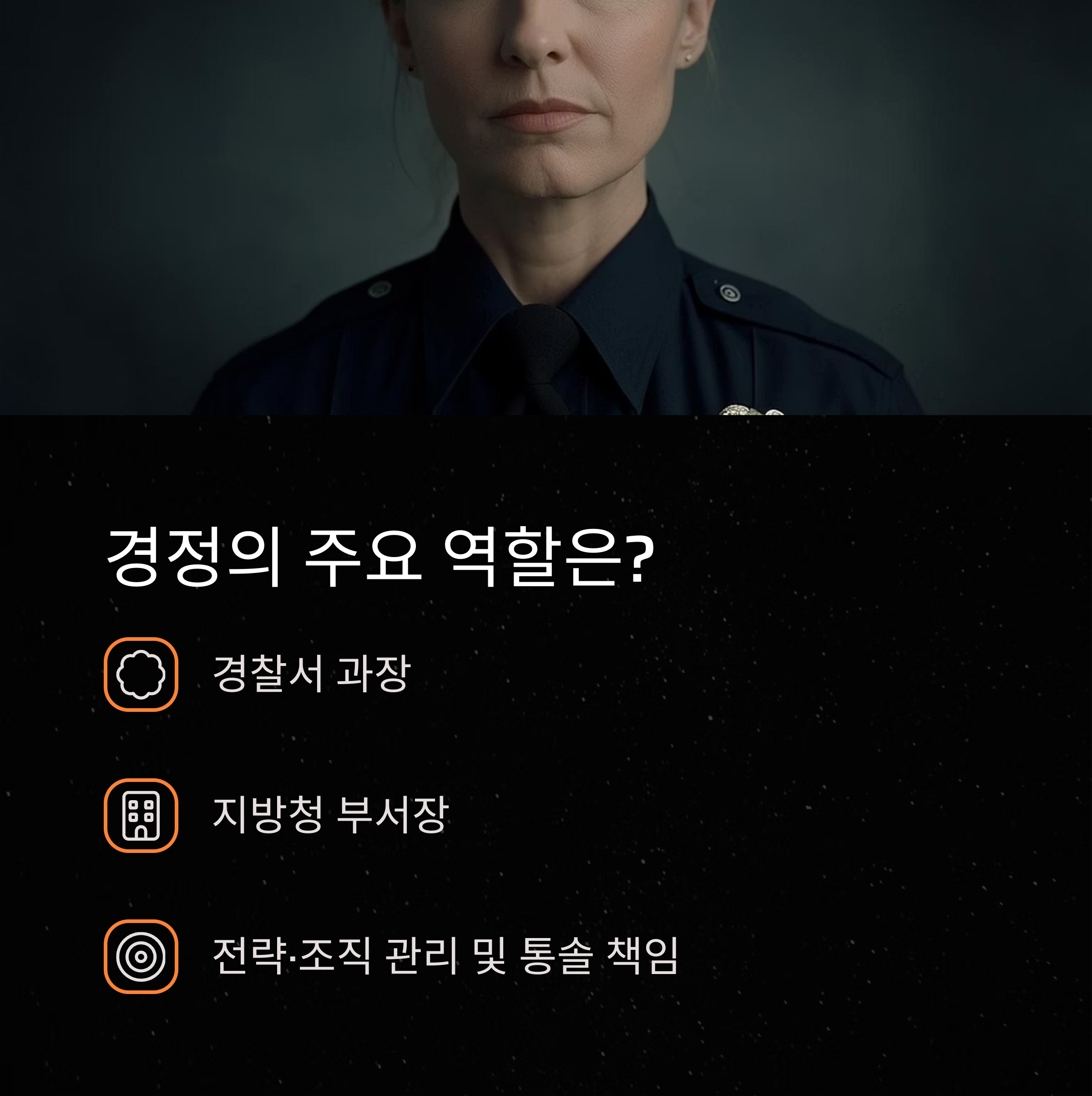 제가 조사하면서 느꼈던 점은, 경정부터는 경찰 조직 내에서 전략 수립, 인사 운영, 지휘 관리 등 보다 거시적인 업무가 주어지기 때문에, 단순한 현장 경험뿐만 아니라 리더십과 행정 능력도 요구된다는 점입니다.