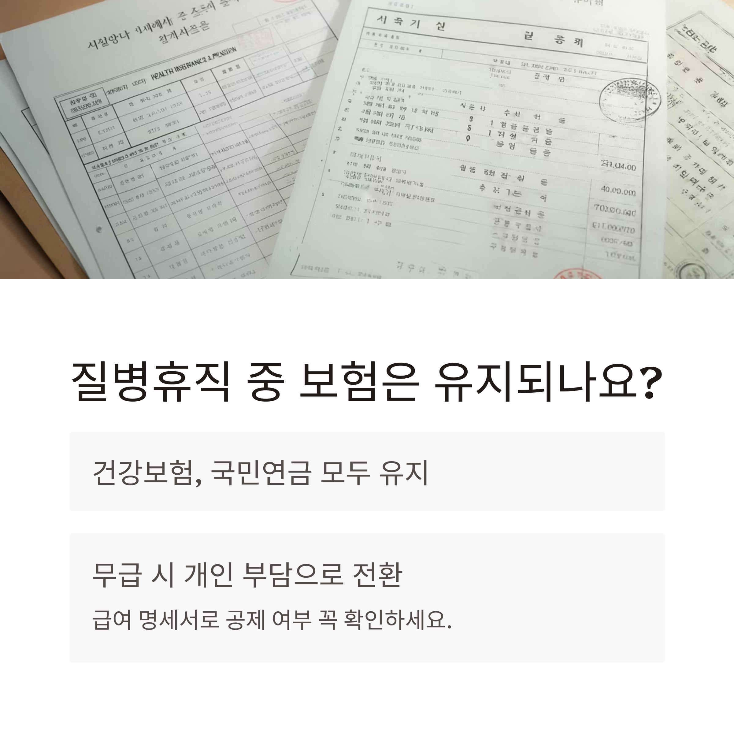 - 질병휴직 중 건강보험·4대보험 유지 여부