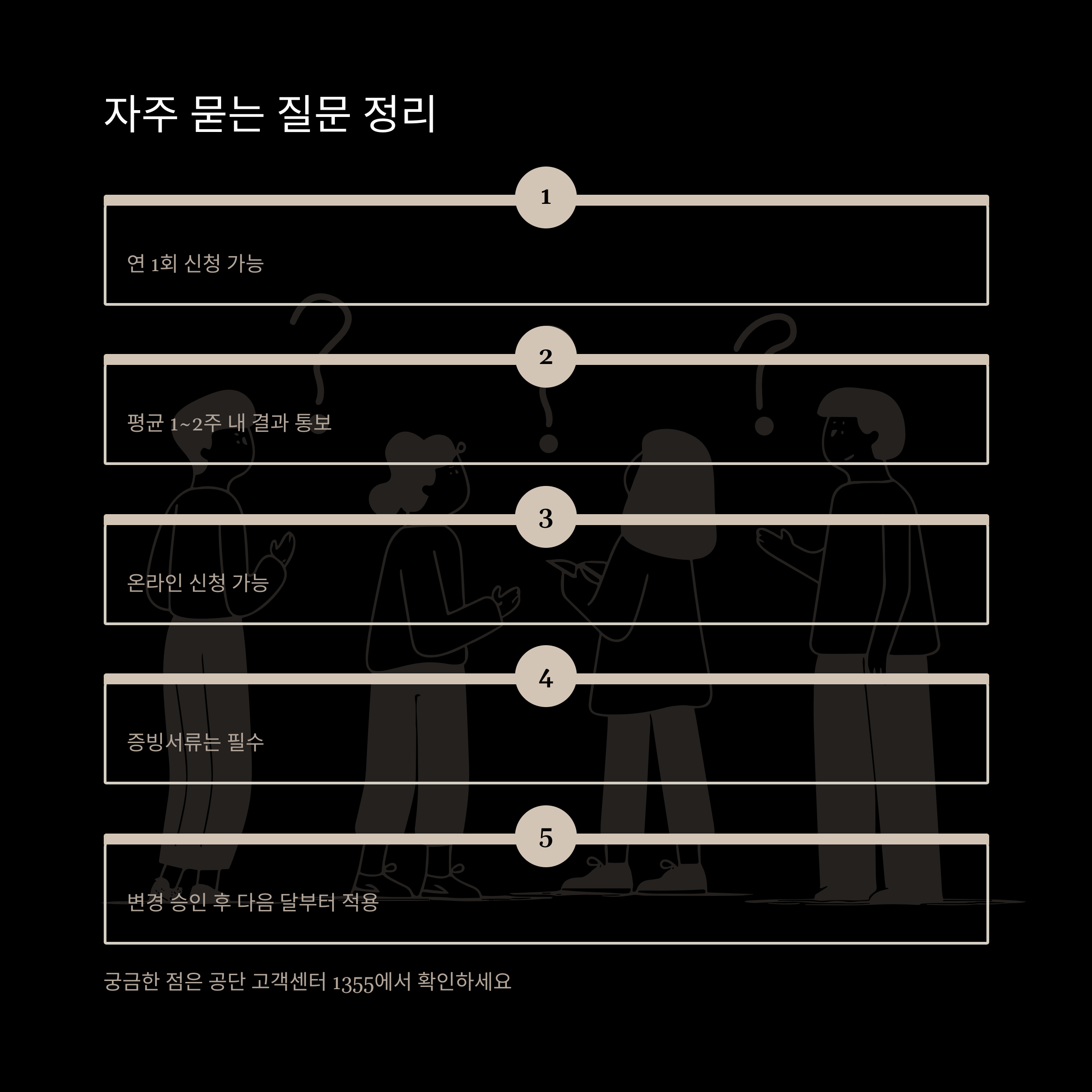 - 1년에 한 번만 변경 신청 가능(특별한 사유 없는 한)