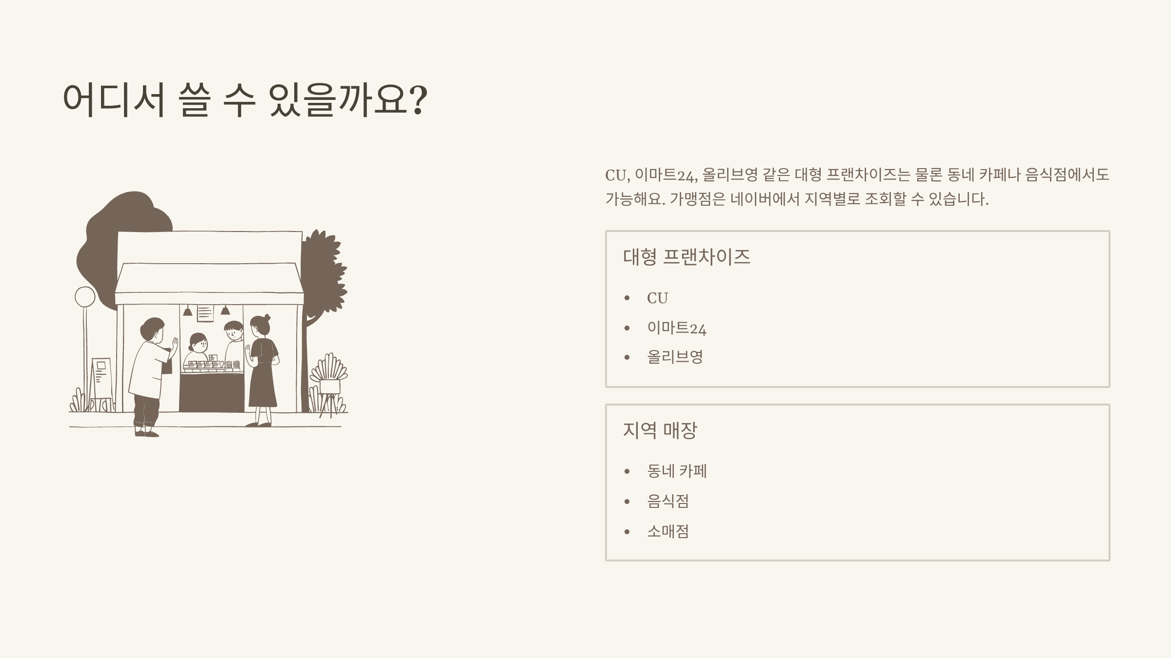 | 드럭스토어 | 올리브영, 롭스 등 | 공식 가맹점 안내 |