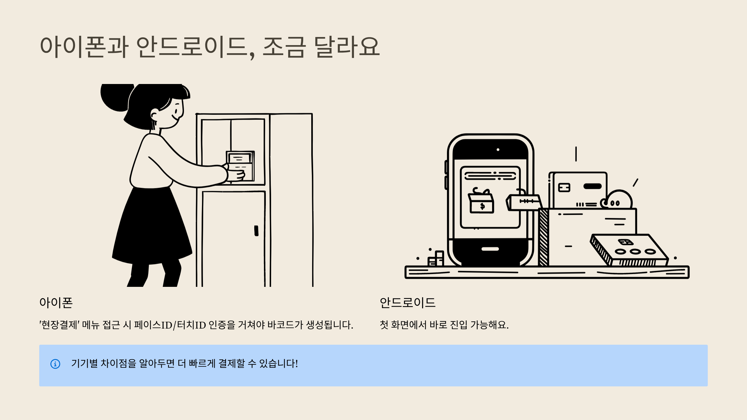 - 바코드, QR코드 등 다양한 결제 방식 지원