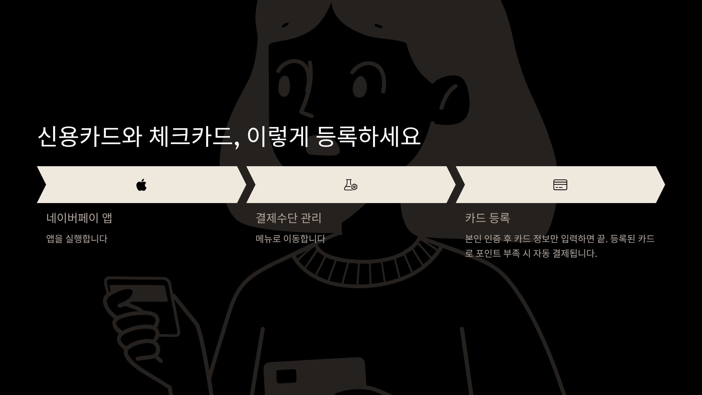 | 카드 연동 | 신용/체크카드 선택 결제 | 네이버페이 가맹 오프라인 매장 |