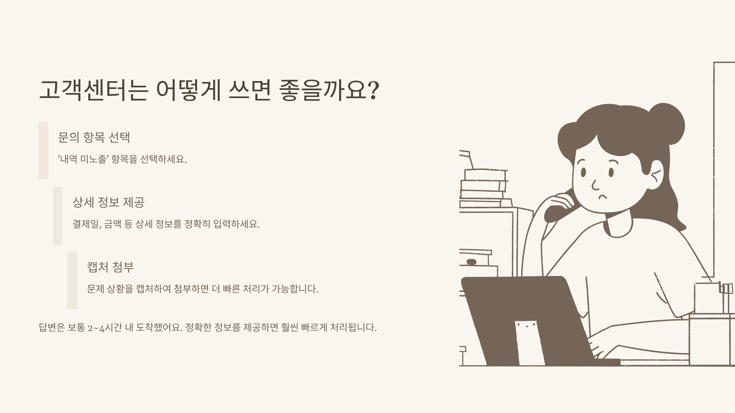 | 결제 직후 내역 없음 | 최대 1~2시간 뒤 재확인 |