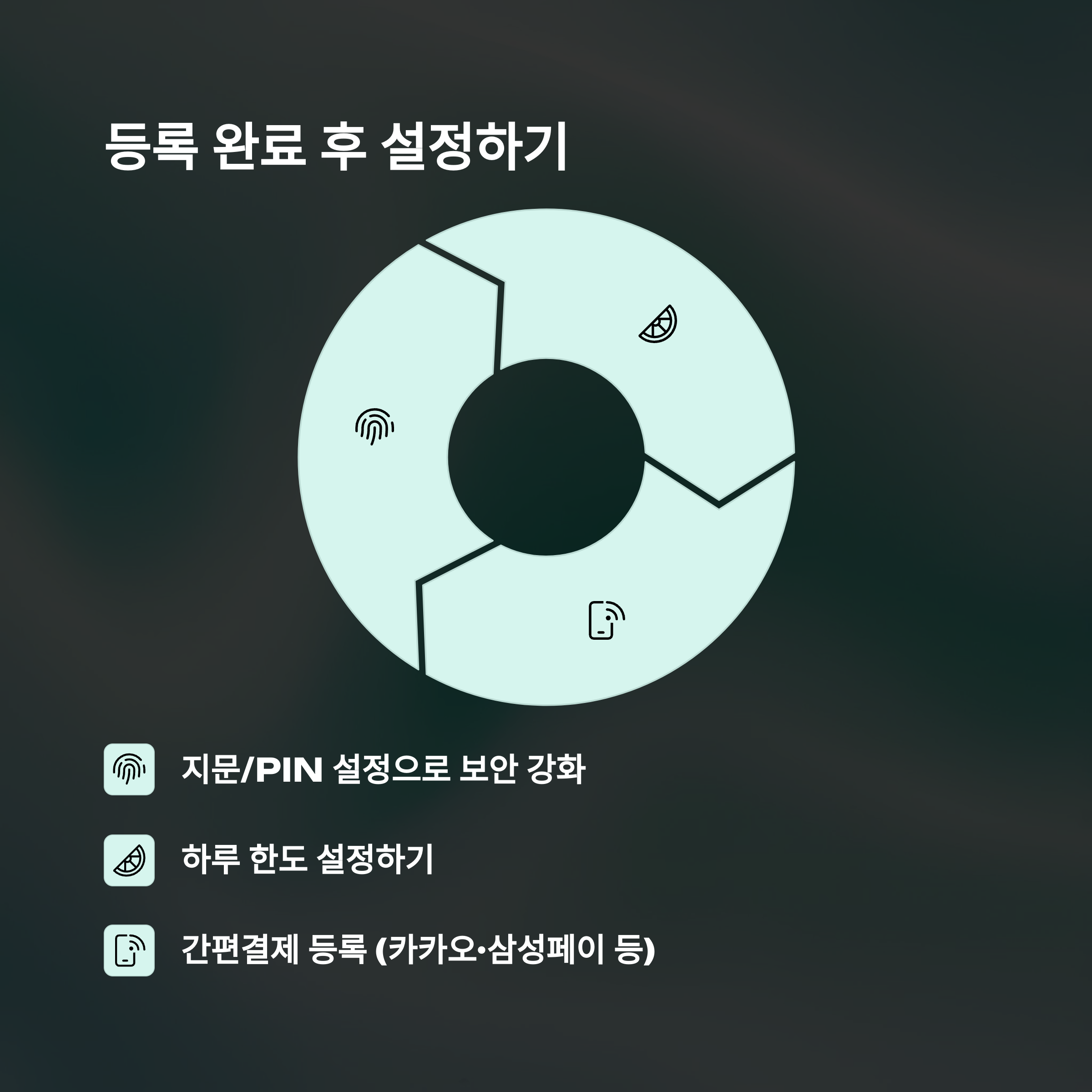 - 등록 후 보안 설정과 간편결제 사용 준비