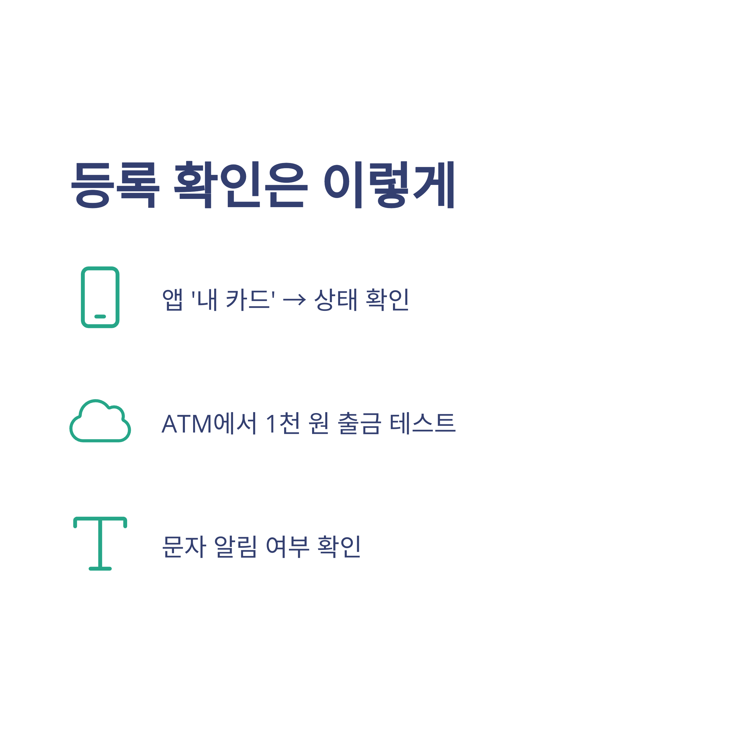 | 활성 상태 안 나타남 | 등록 절차 누락 | ATM 테스트 또는 고객센터 확인 |