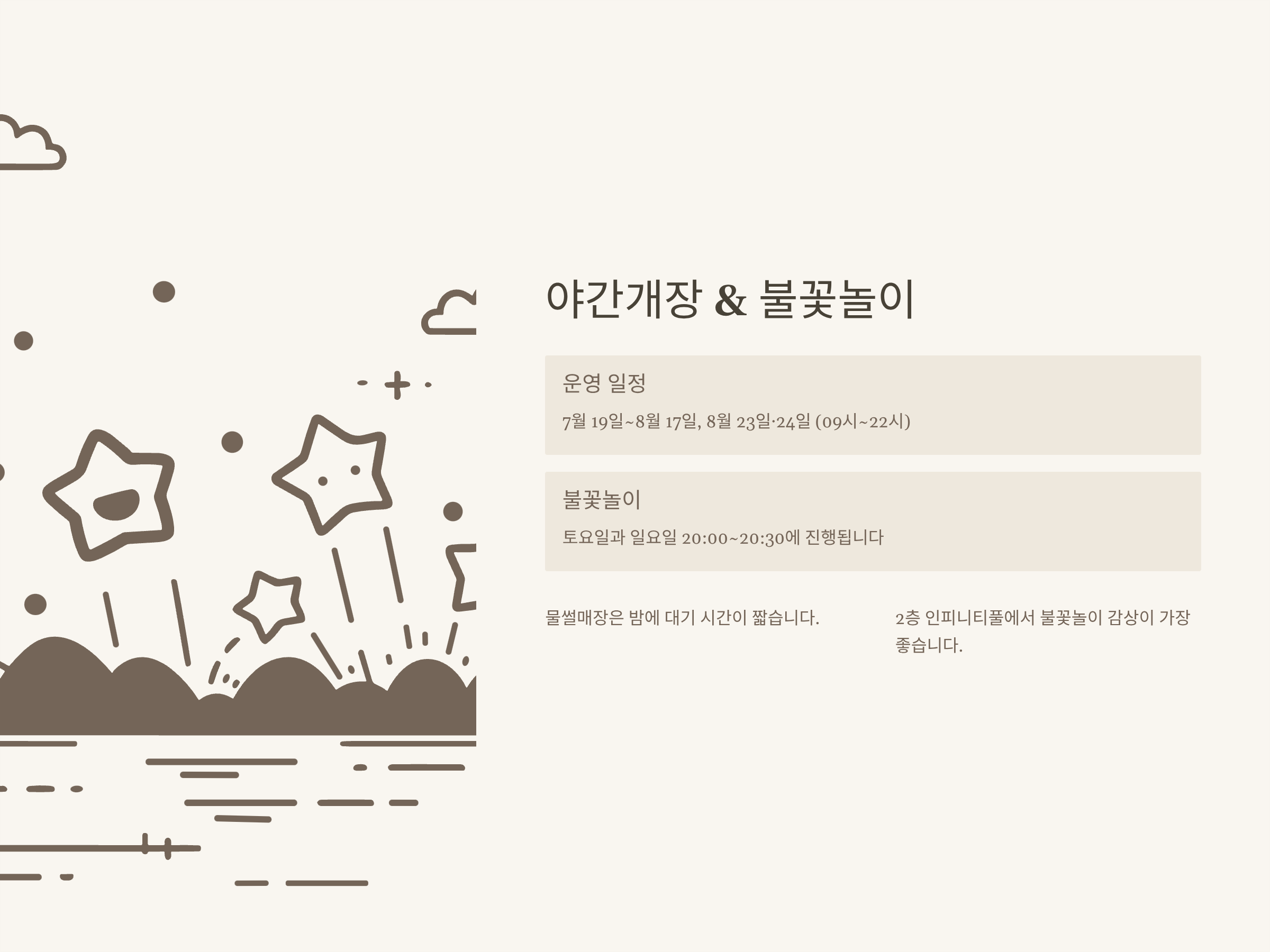 야간개장, 워터밤·불꽃놀이 꿀팁