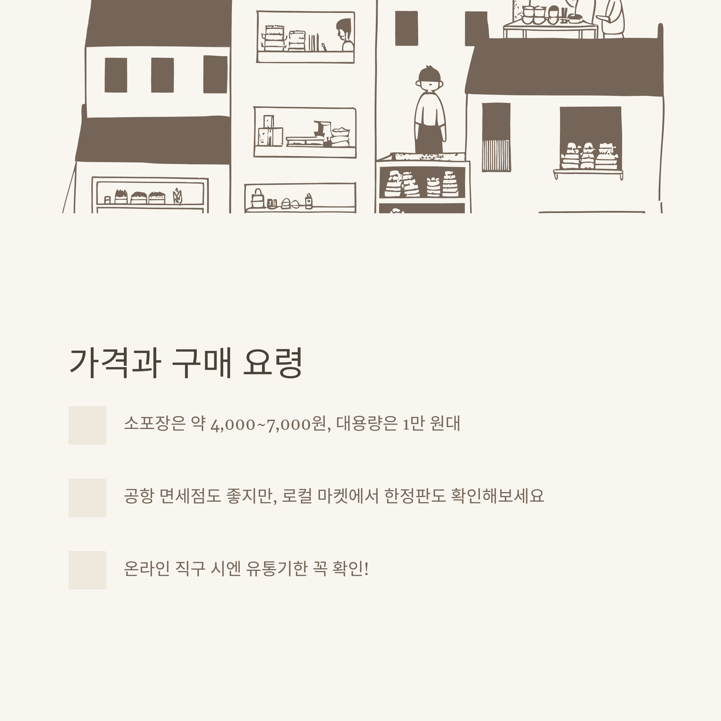 | 국내 온라인 주문 | 포장상품 다양, 택배 이용, 유통기한 확인 |