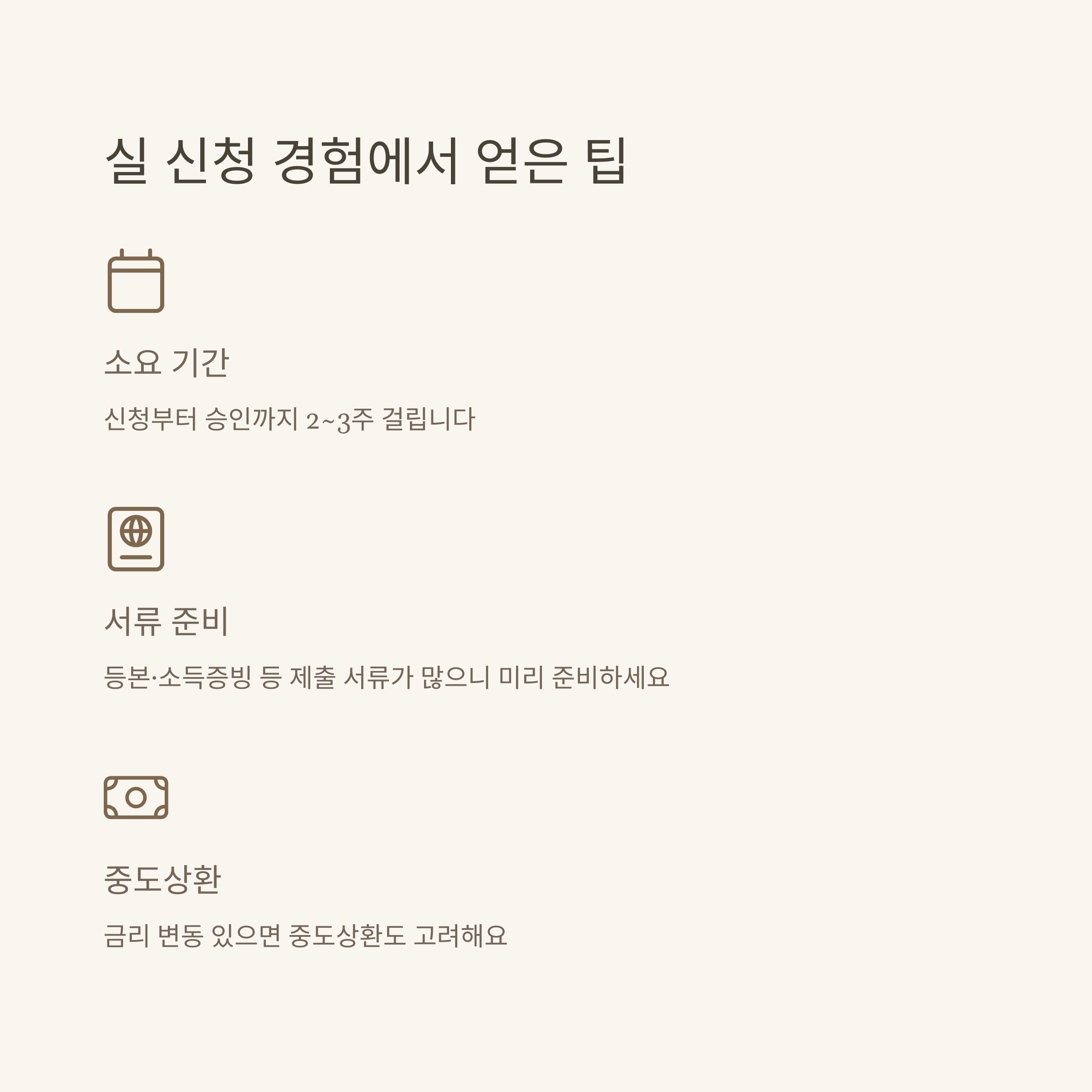 실무 팁 | 상환계획 미리 시뮬레이션, 서류 미리 준비, 금리변동 수시 확인 |
