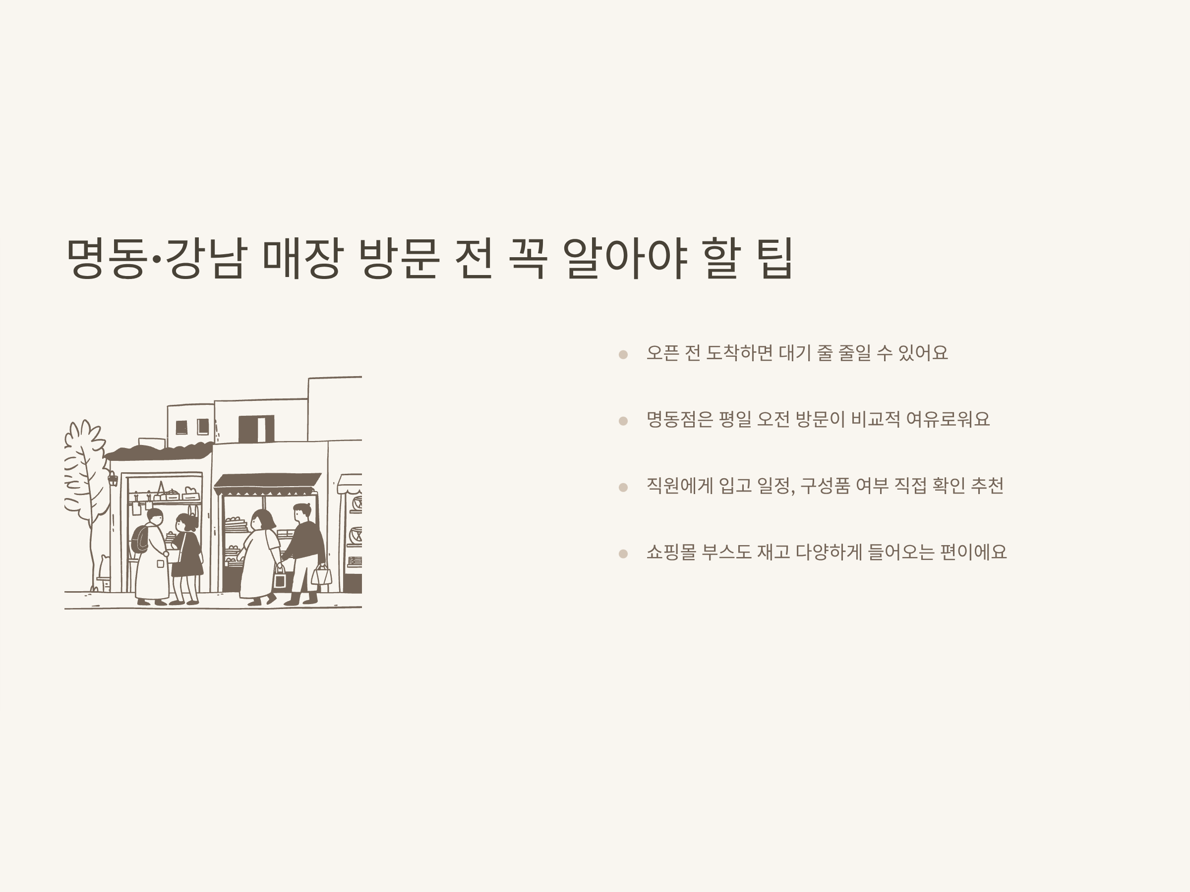 진열대 옆 스팟, 인파 적을 때 촬영 추천