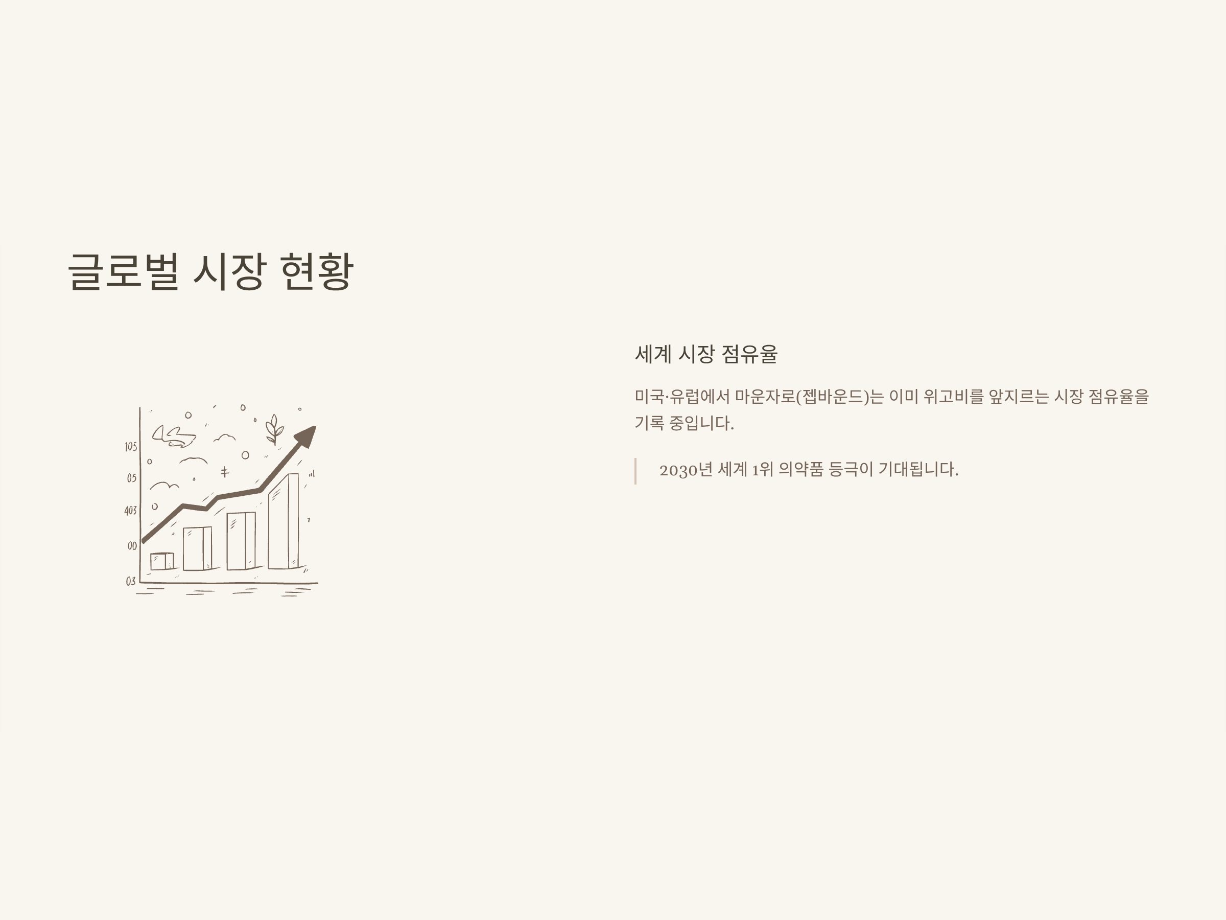글로벌 시장조사업체 ‘이밸류에이트’에 따르면 2030년 마운자로가 세계 1위 매출 의약품(약 48조원)으로, 젭바운드는 3위에 오를 것으로 예측될 만큼 잠재력이 높습니다. 미국은 이미 마운자로 점유율이 50%를 넘어섰고, 유럽 역시 빠른 성장세를 보이고 있습니다.