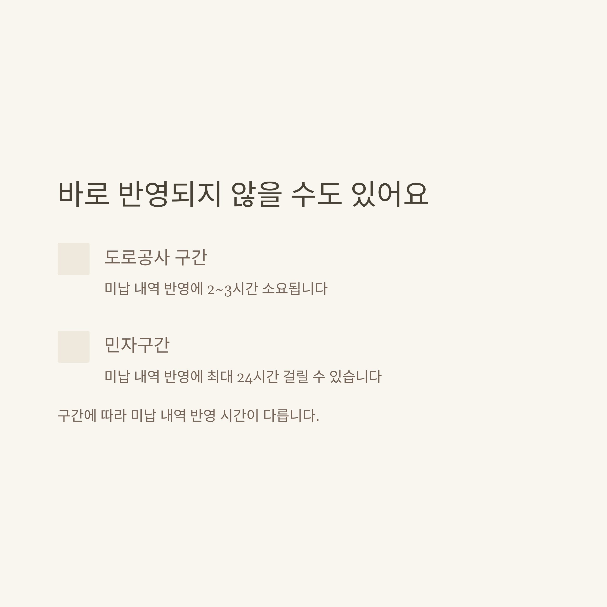 제가 직접 납부 후 조회해보니, 보통 한국도로공사 구간은 2~3시간 내, 민자고속도로는 최대 24시간까지 걸린 적도 있었어요.