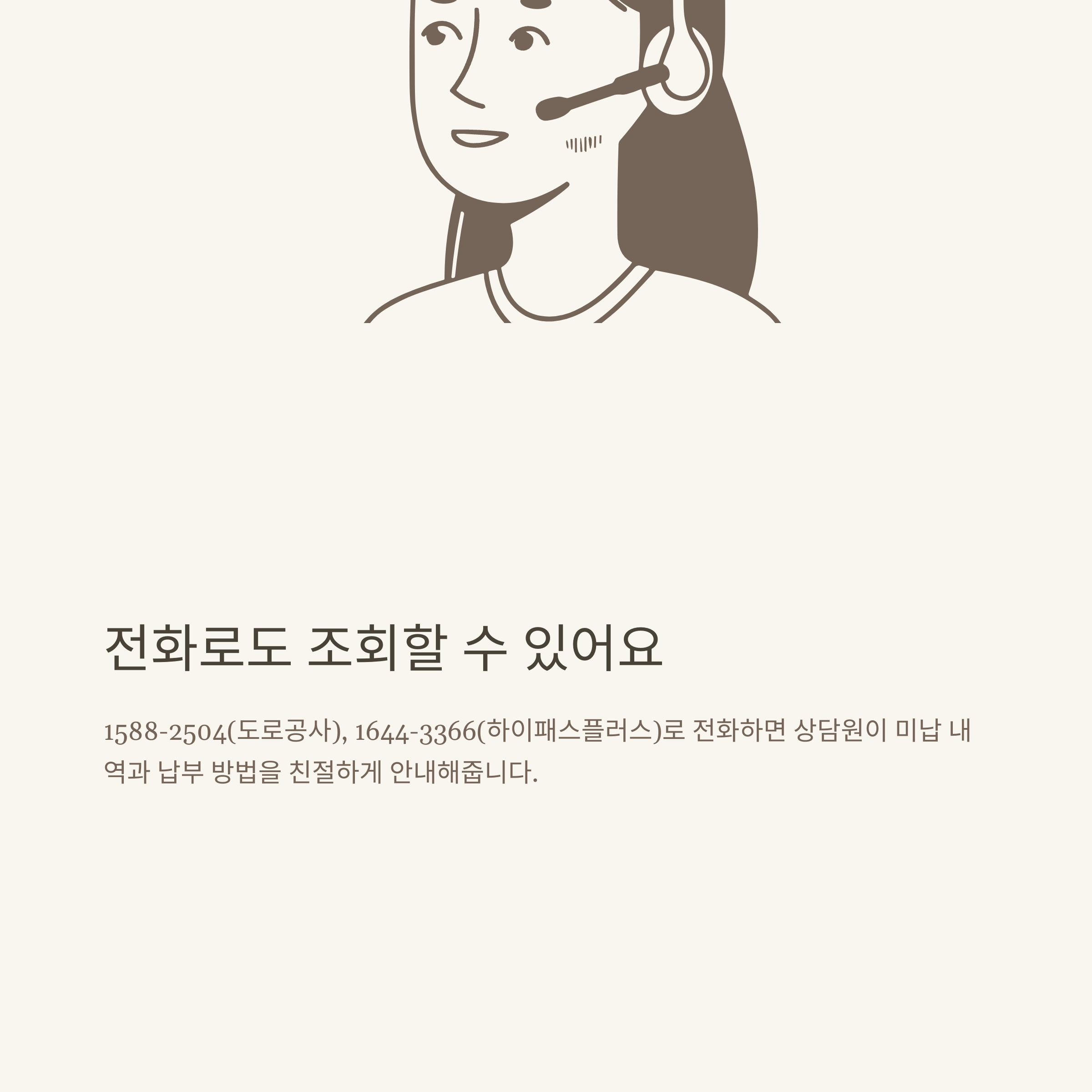 온라인이 어렵거나, 앱/사이트에서 오류가 있을 때는 전화로도 미납통행료 조회가 가능합니다.
