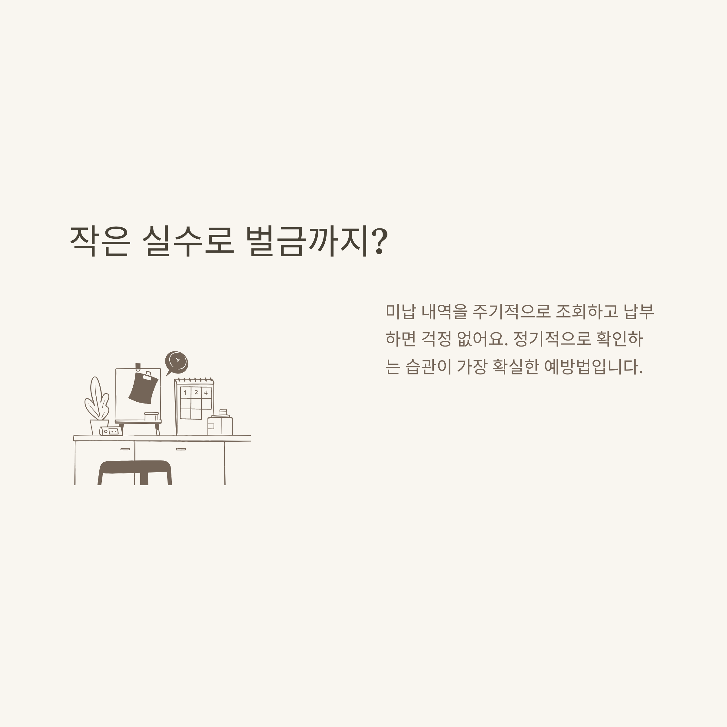 - 미납 상태 장기 방치 시 과태료·법적조치 가능
