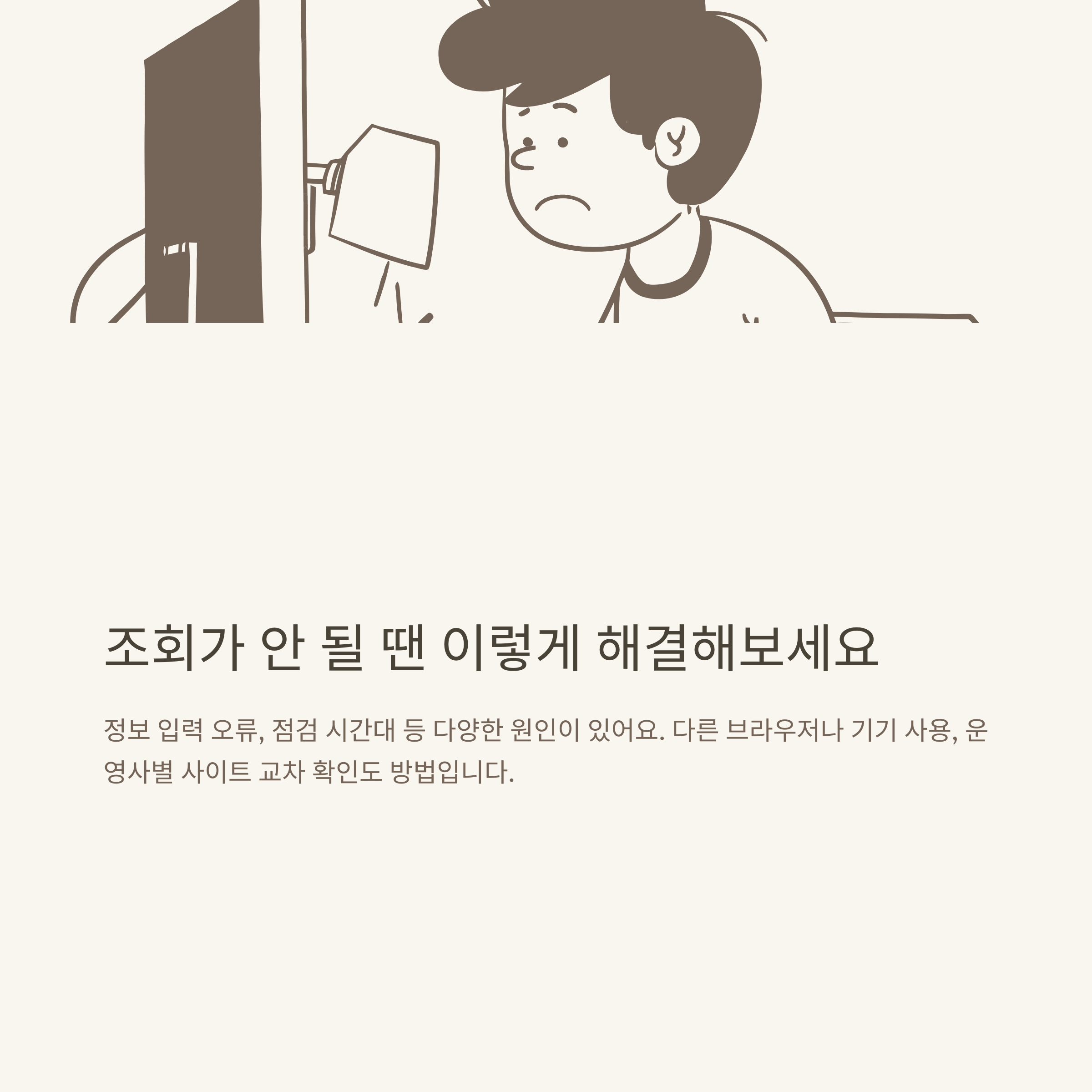 실제로 시스템 점검 시간대엔 조회 자체가 불가한 경우가 있으니, 낮 시간이나 평일에 재시도하면 대부분 해결됐습니다.