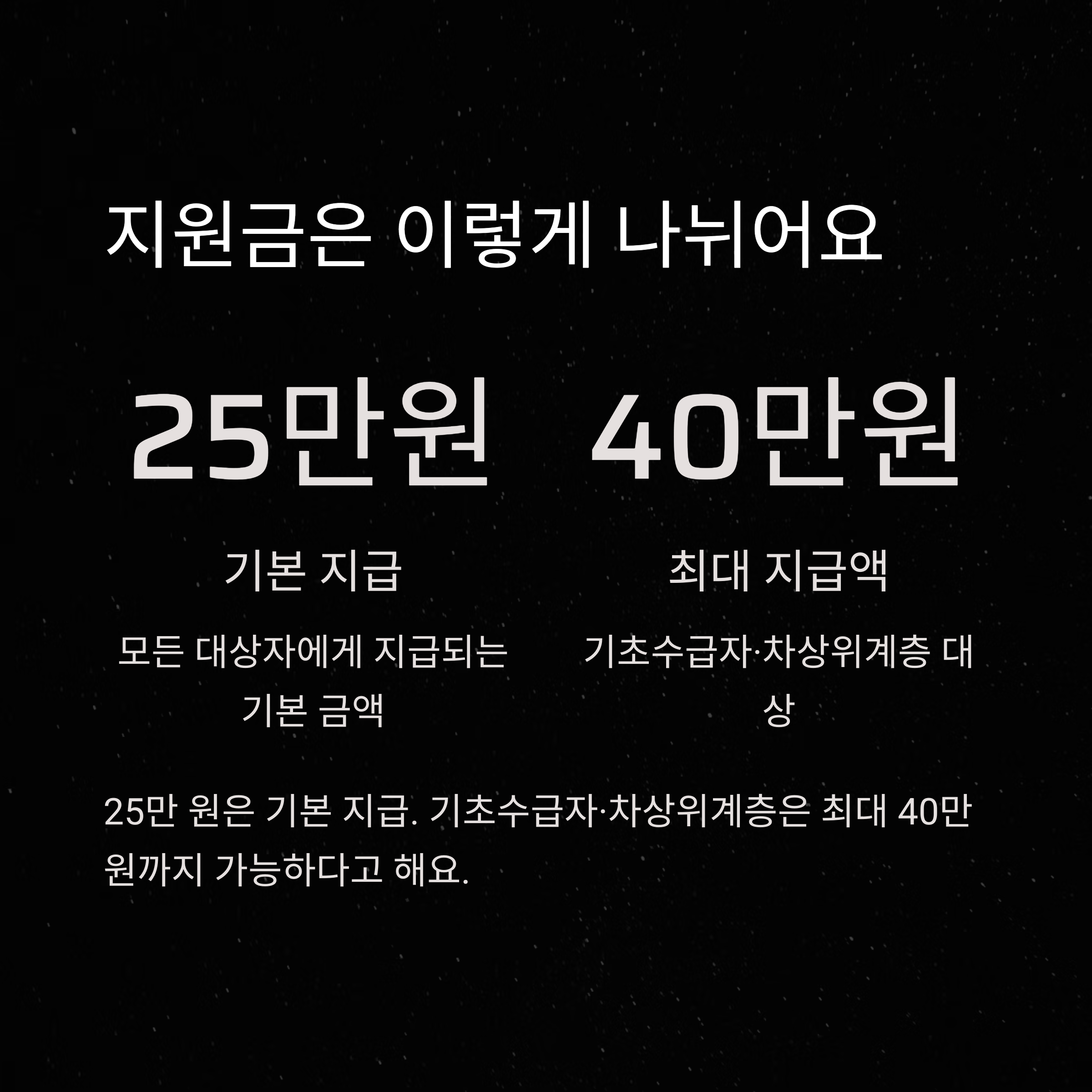 | 일반 국민 (중소득 이하) | 25만원 | 기본 지급액 |