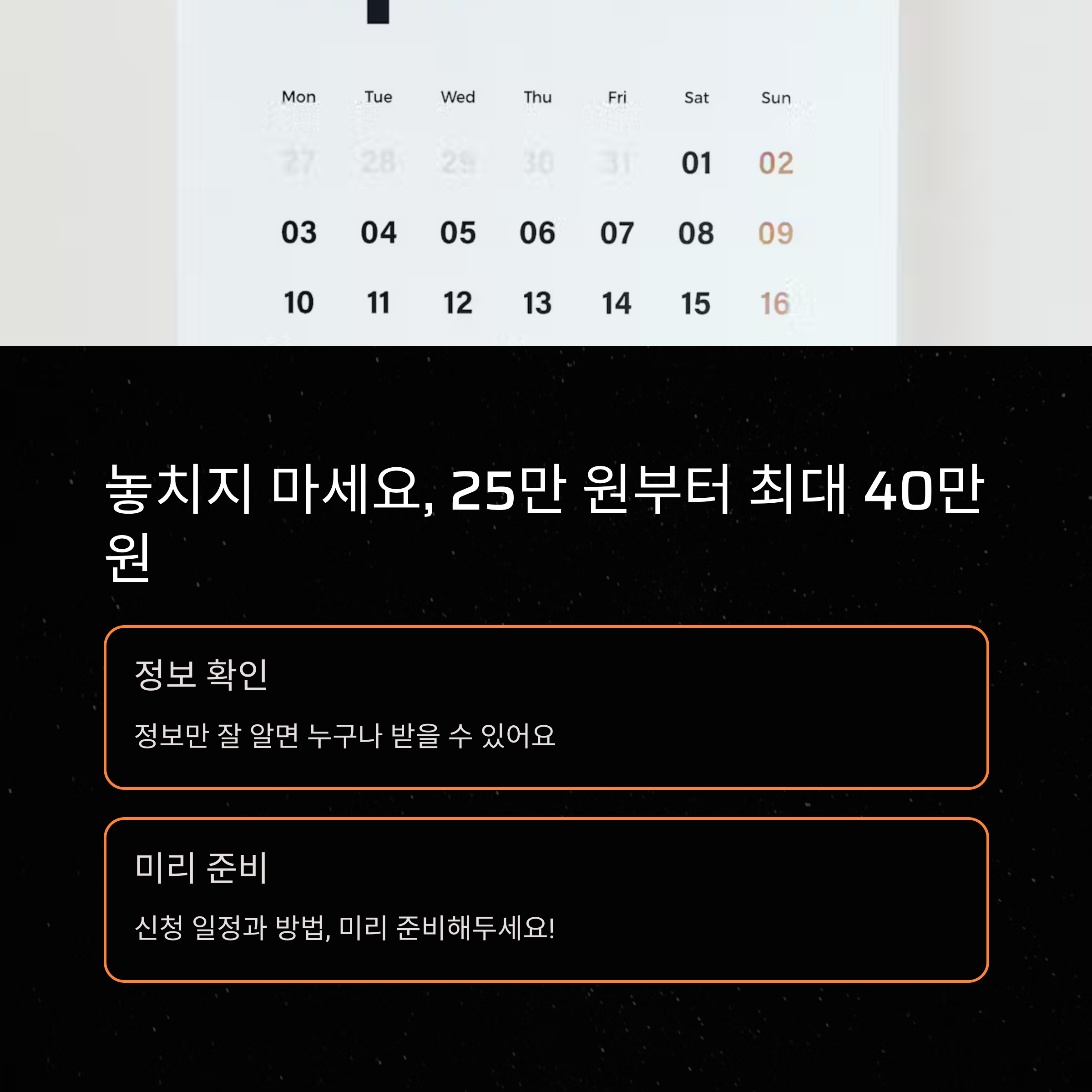 | 중위소득 이하 | 25만원 | 기본 지급 |