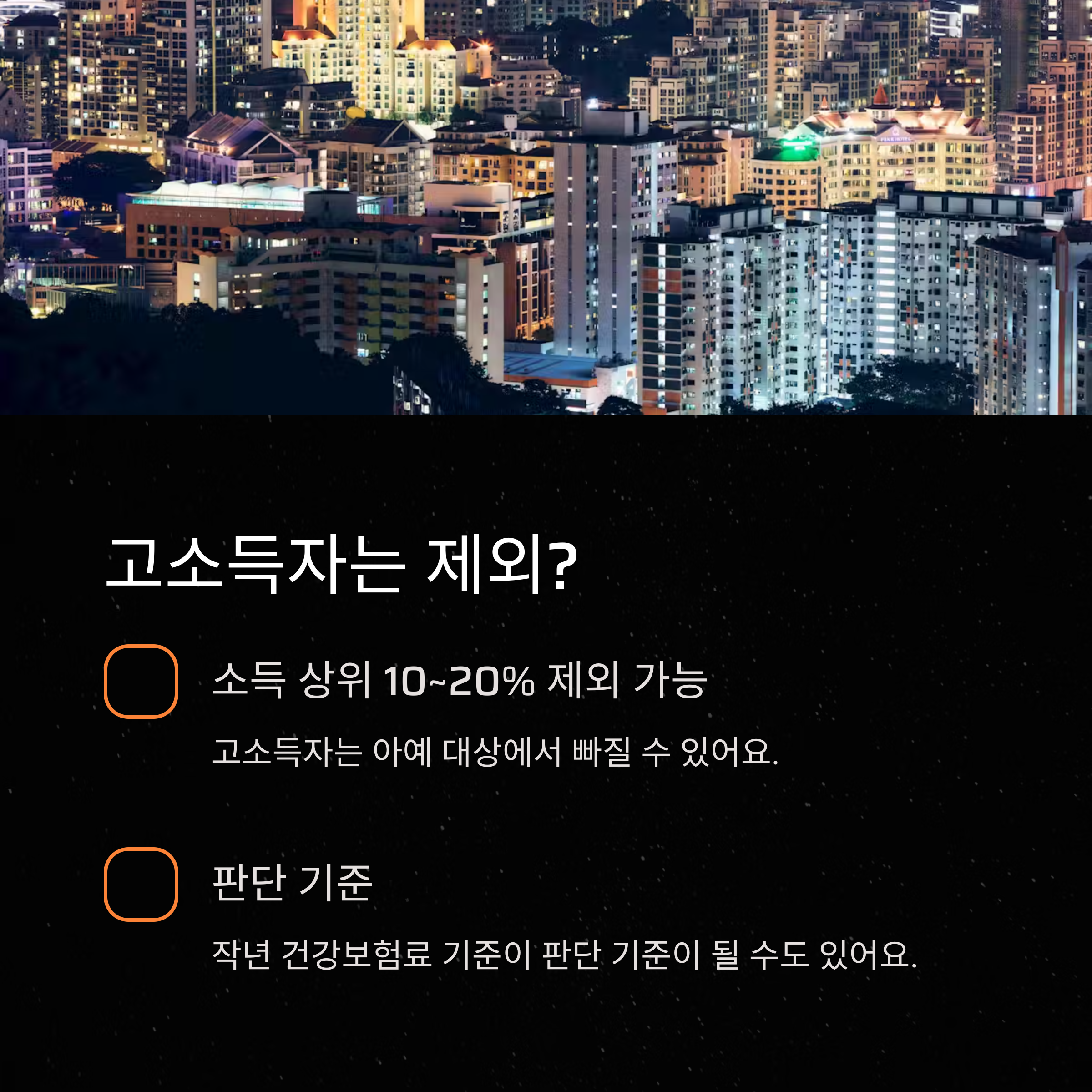 | 고소득층 | 지급 제외 | 상위 10~20% |