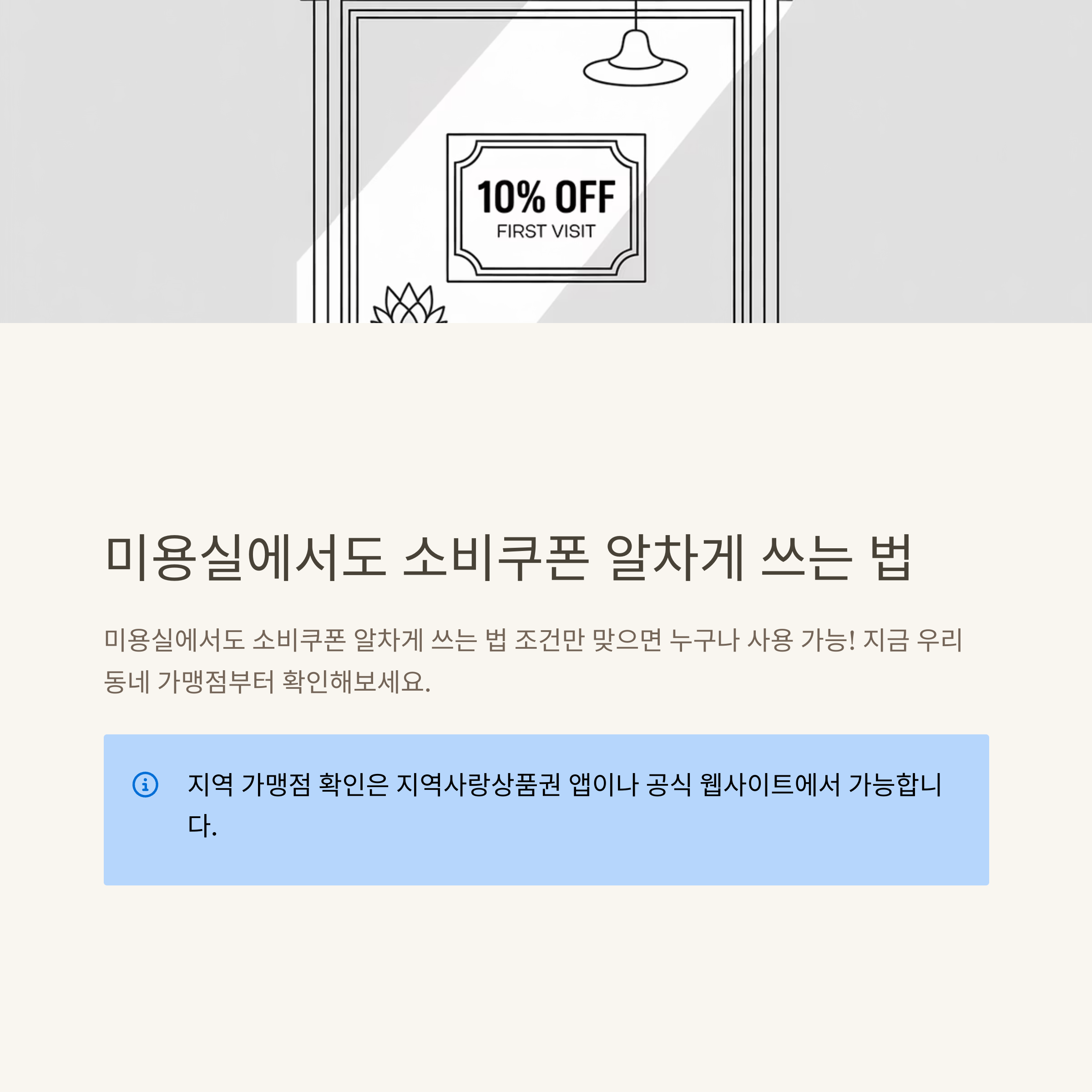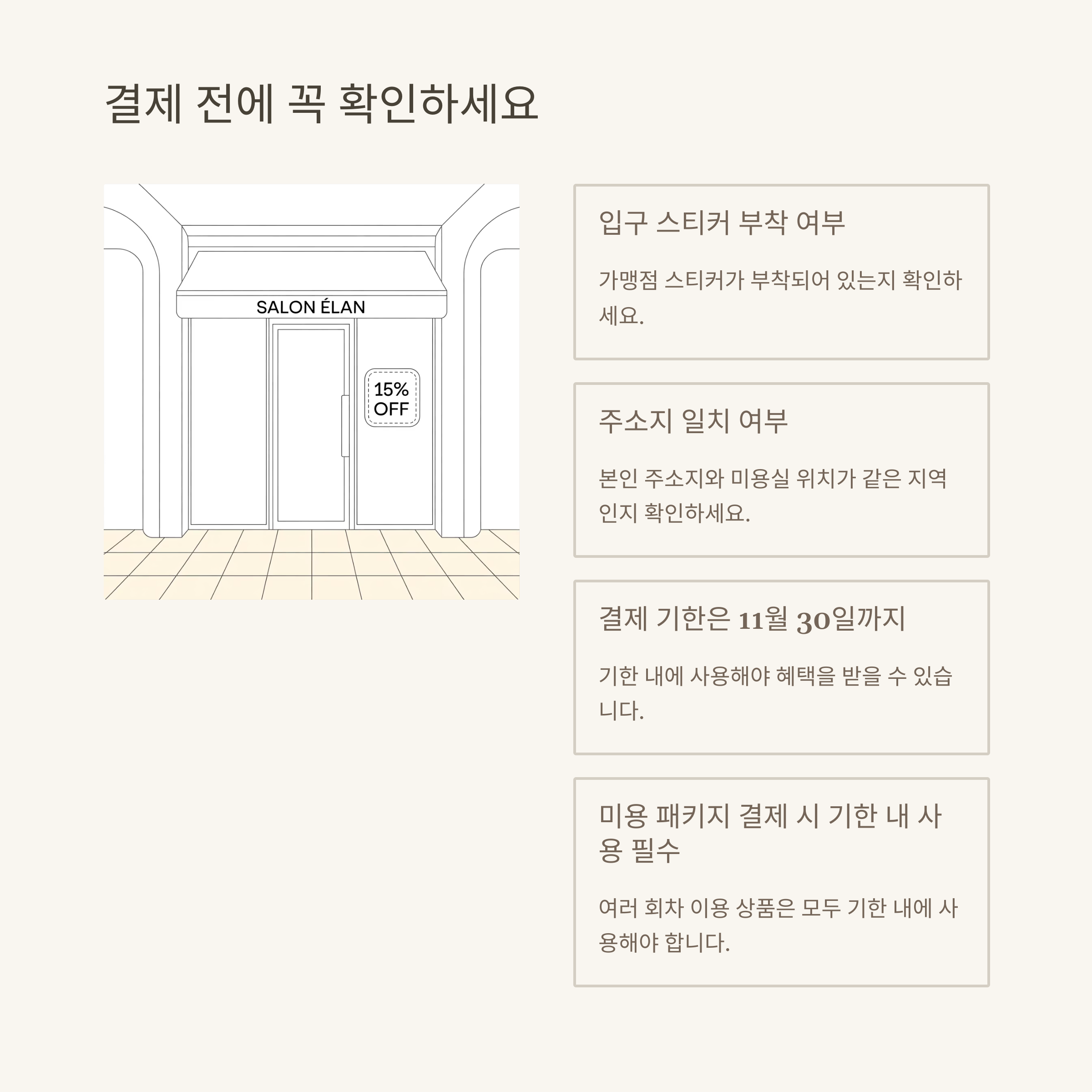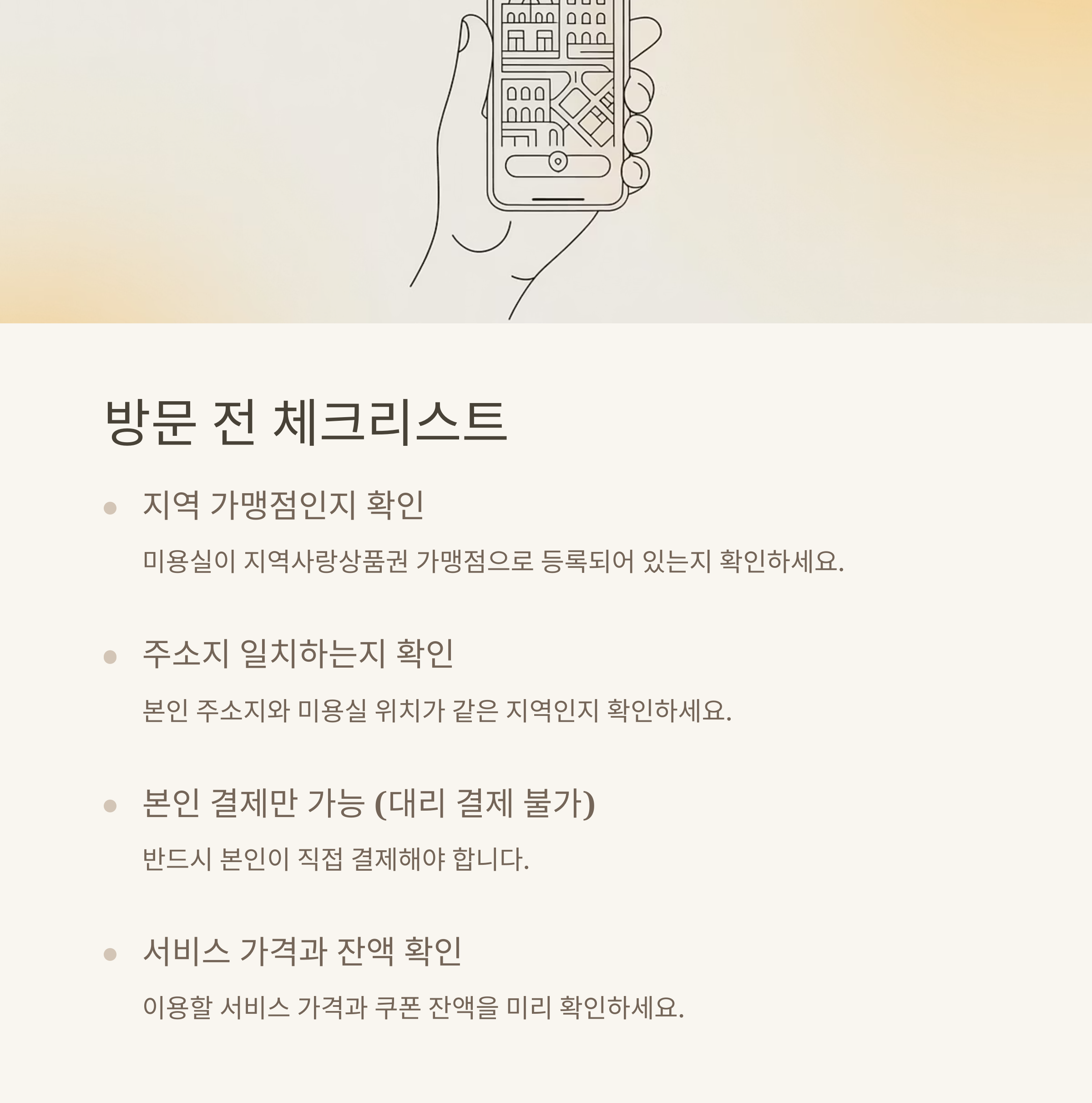 - 미용실이 지역사랑상품권 가맹점인지(입구 스티커, 앱/홈페이지 확인)