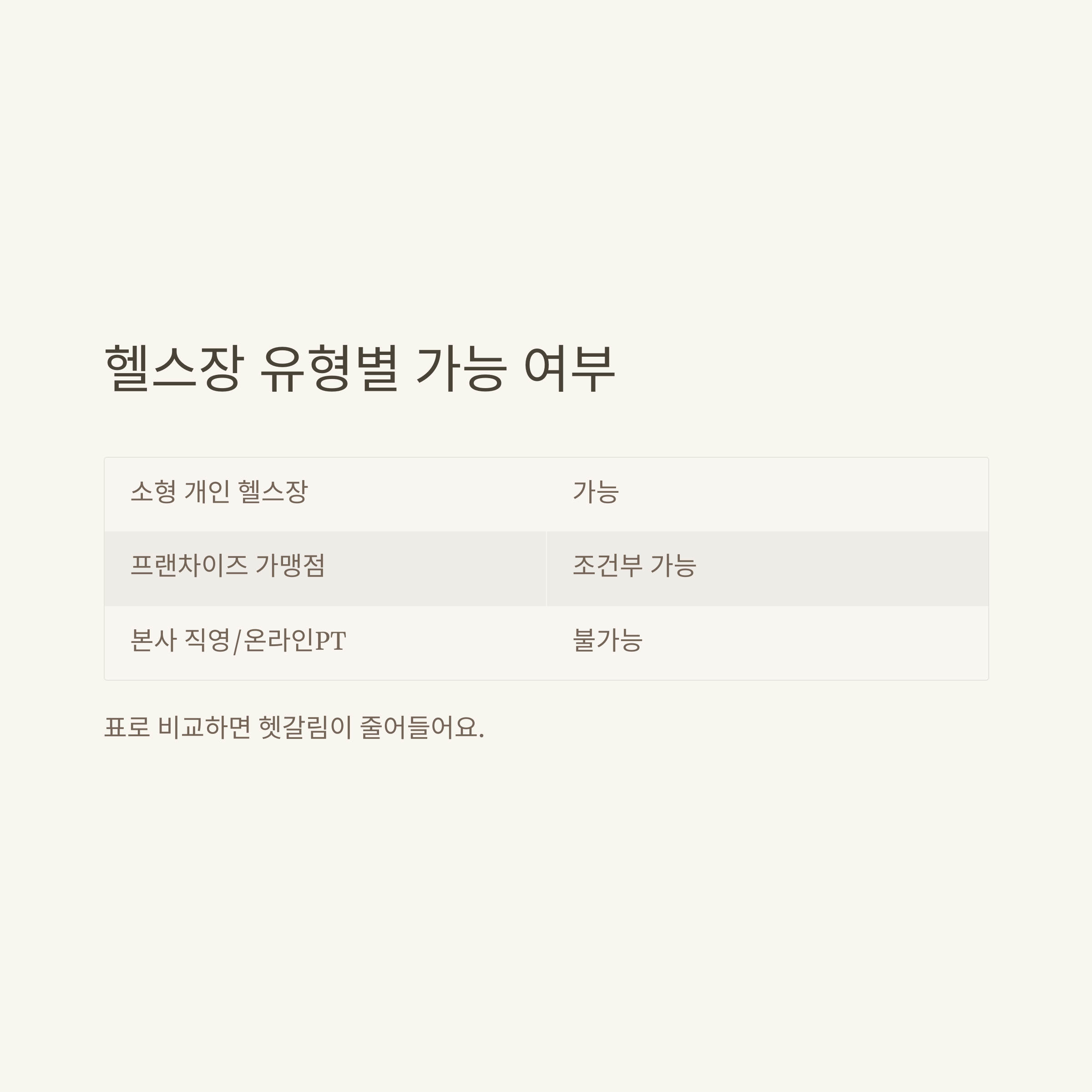 헬스장 유형별 사용 가능 비교표