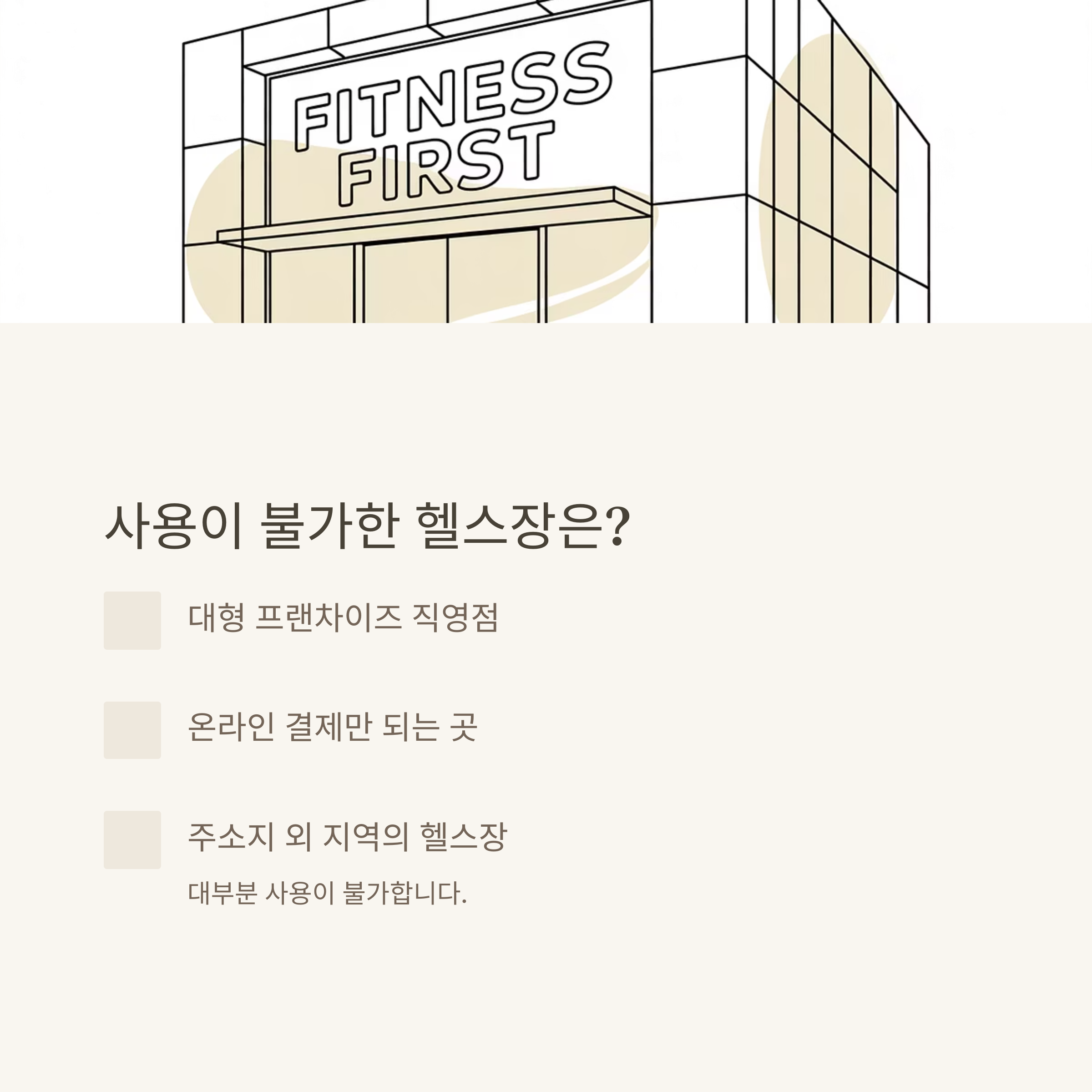 모든 헬스장에서 쓸 수 있는 게 아니라는 점, 꼭 기억해야 합니다. 아래 조건에 해당하는 헬스장에서는 민생회복 소비쿠폰을 사용할 수 없습니다. 저는 대형 프랜차이즈와 온라인 결제 시스템에 대해 문의하다가 이런 답변을 직접 들었습니다.
