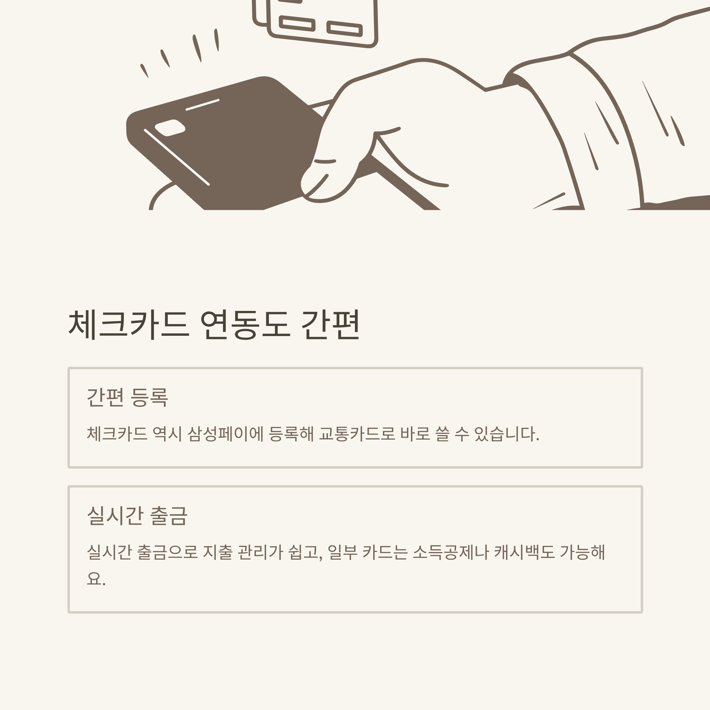- 삼성페이 앱 → 체크카드 등록(교통카드 기능 지원 여부 확인)
