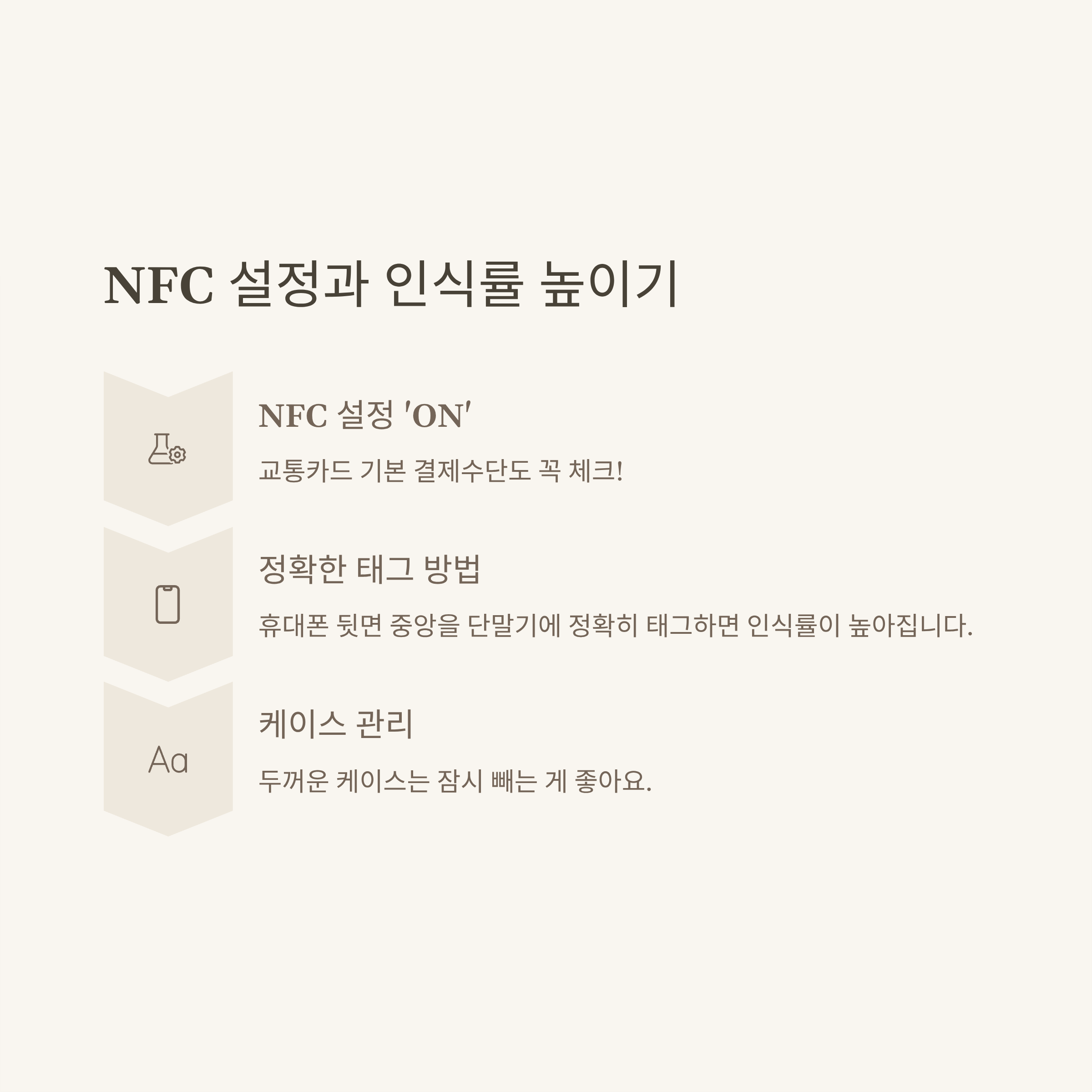 - 폰 케이스가 너무 두껍거나 금속 재질일 때, 케이스를 빼고 태깅