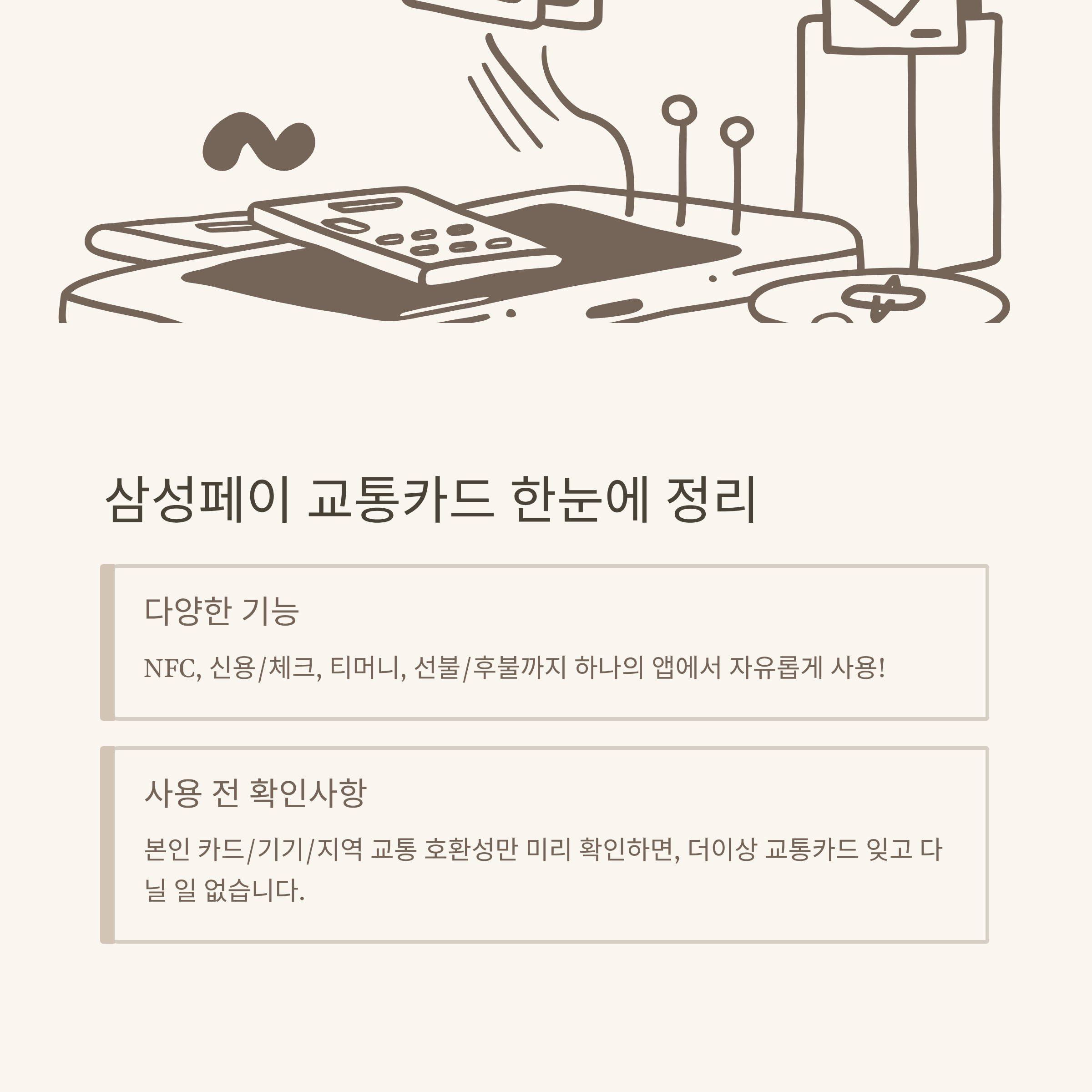 티머니는 전국 대부분의 대중교통(버스, 지하철, 일부 택시, 편의점 결제 등)에서 호환이 뛰어났고, 제가 사용해본 바로는 결제 오류도 거의 없었습니다. 티머니 공식 홈페이지에서도 삼성페이 연동 방법 및 주의사항을 상세하게 안내하고 있으니 참고하시면 좋겠습니다.