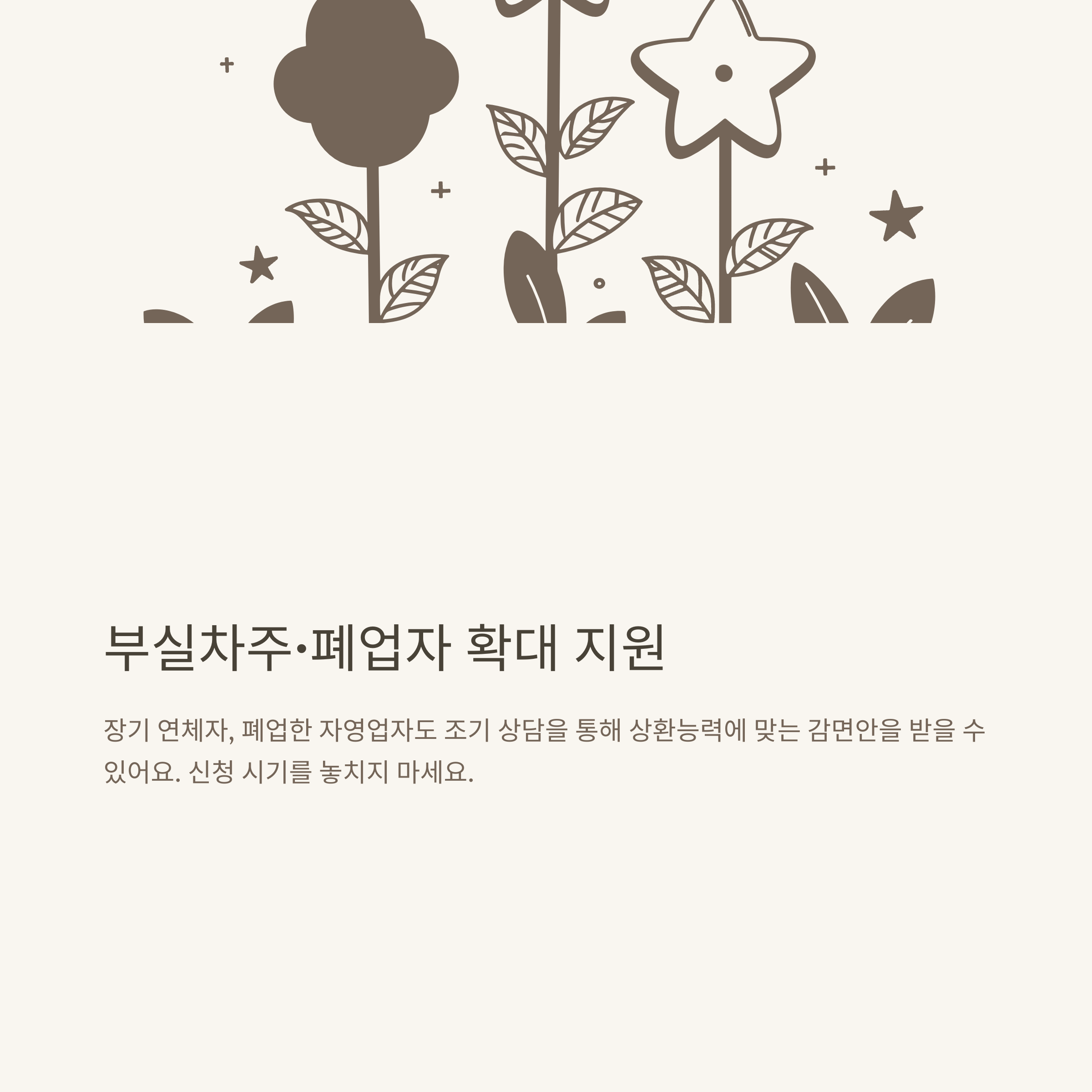 이 제도는 단순한 연장이나 유예가 아니라, 연체 또는 부실 위험이 있는 채무자의 상환 부담을 줄이고, 일부는 원금이나 이자 감면까지 지원해줍니다. 특히, 경영 정상화에 실패해 폐업하거나 소득이 급감한 경우에도 신청 자격이 열려 있다는 점이 가장 현실적이었습니다.