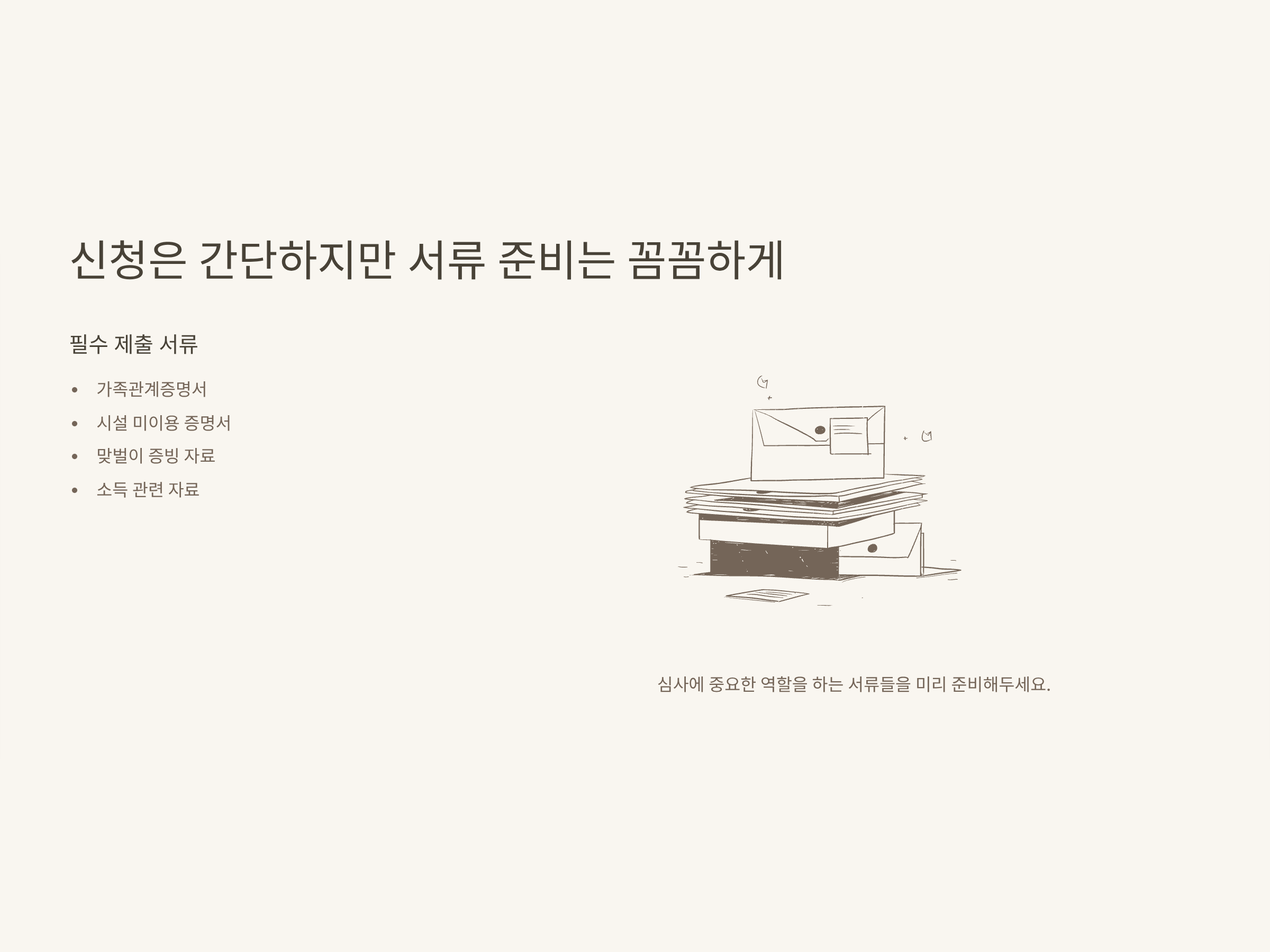 - 신청은 생각보다 간단하지만, 서류(가족관계·재직·소득증명 등)는 미리 준비