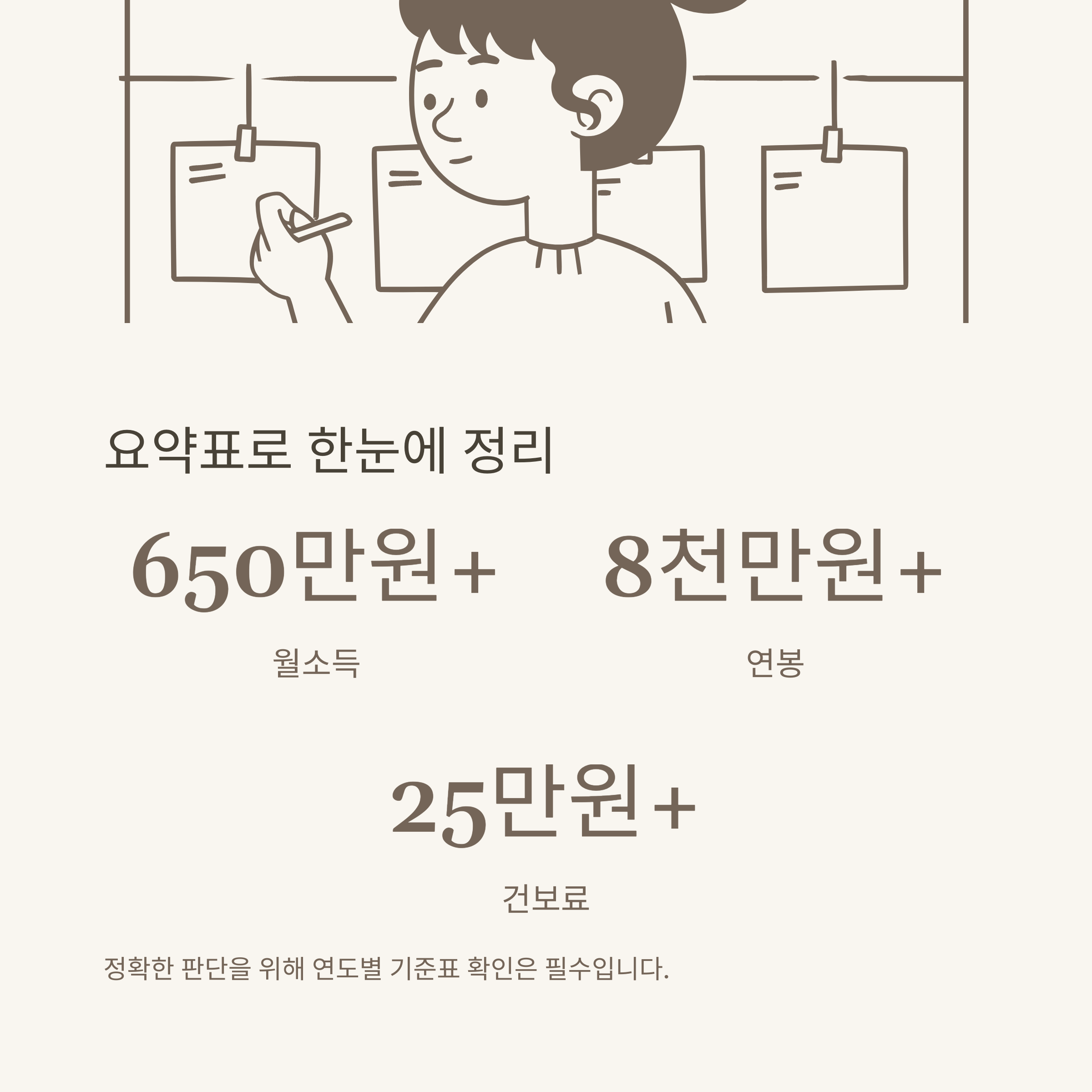 월소득 | 상위 10% 구간 | 650만~850만 원↑ | 25만~30만 원↑ | 연봉명세서, 고지서 대조 | 건보료표 |