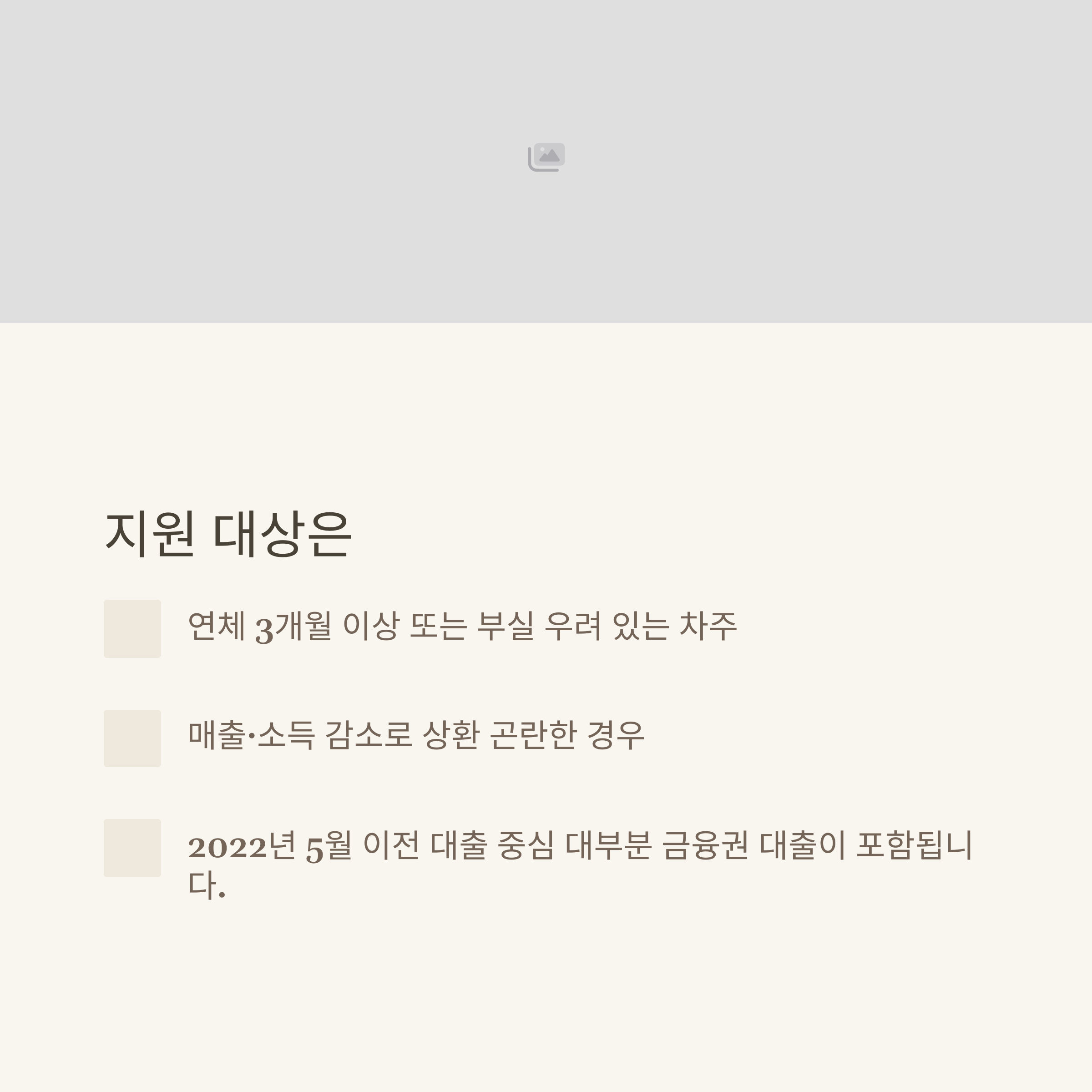 | 신청조건 | 3개월 이상 연체, 부실 우려, 매출·소득 감소 등 |