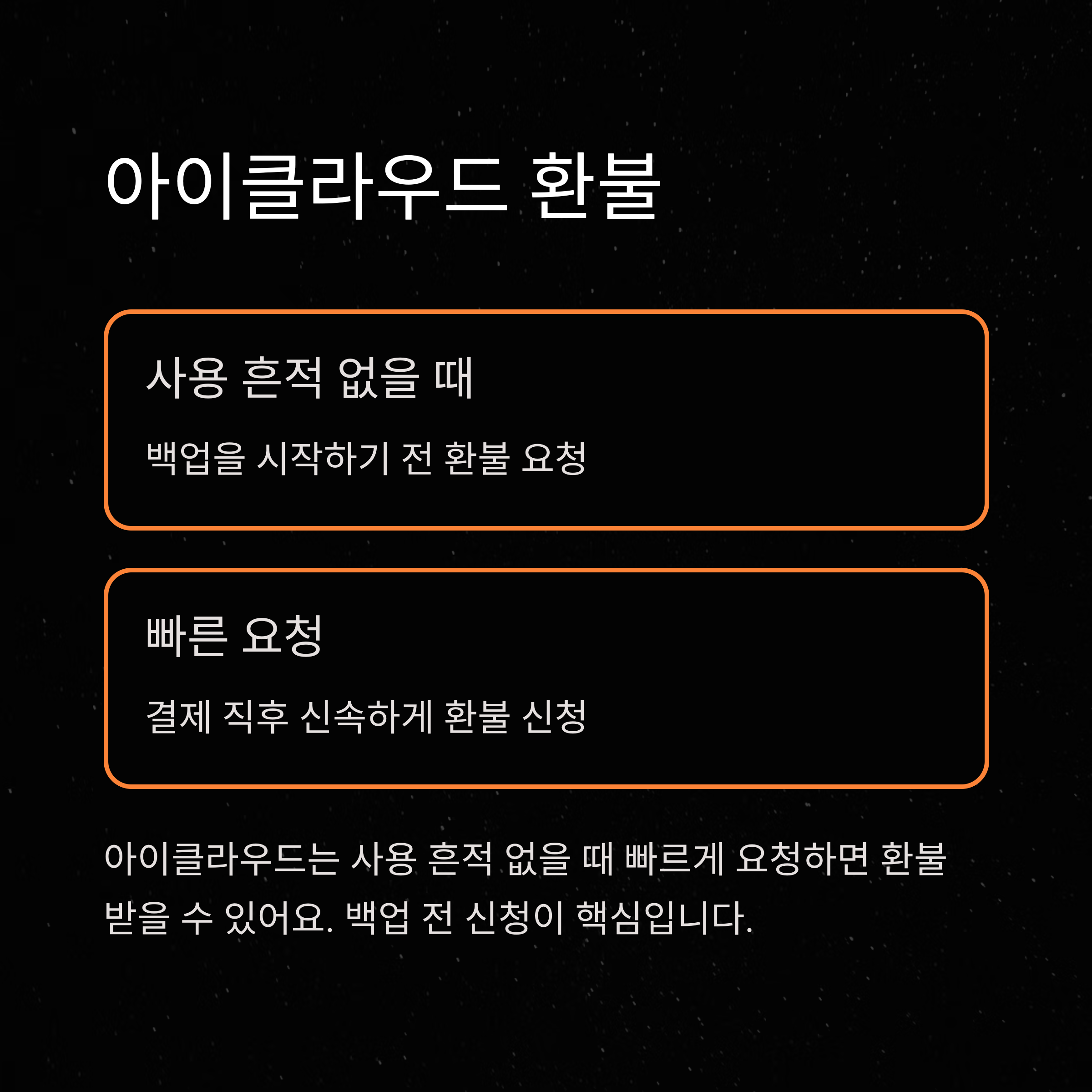 아이클라우드 환불을 원하시는 분들은 ‘갱신 후 바로 요청’과 ‘이용 전 상태 유지’를 꼭 기억해 주세요.