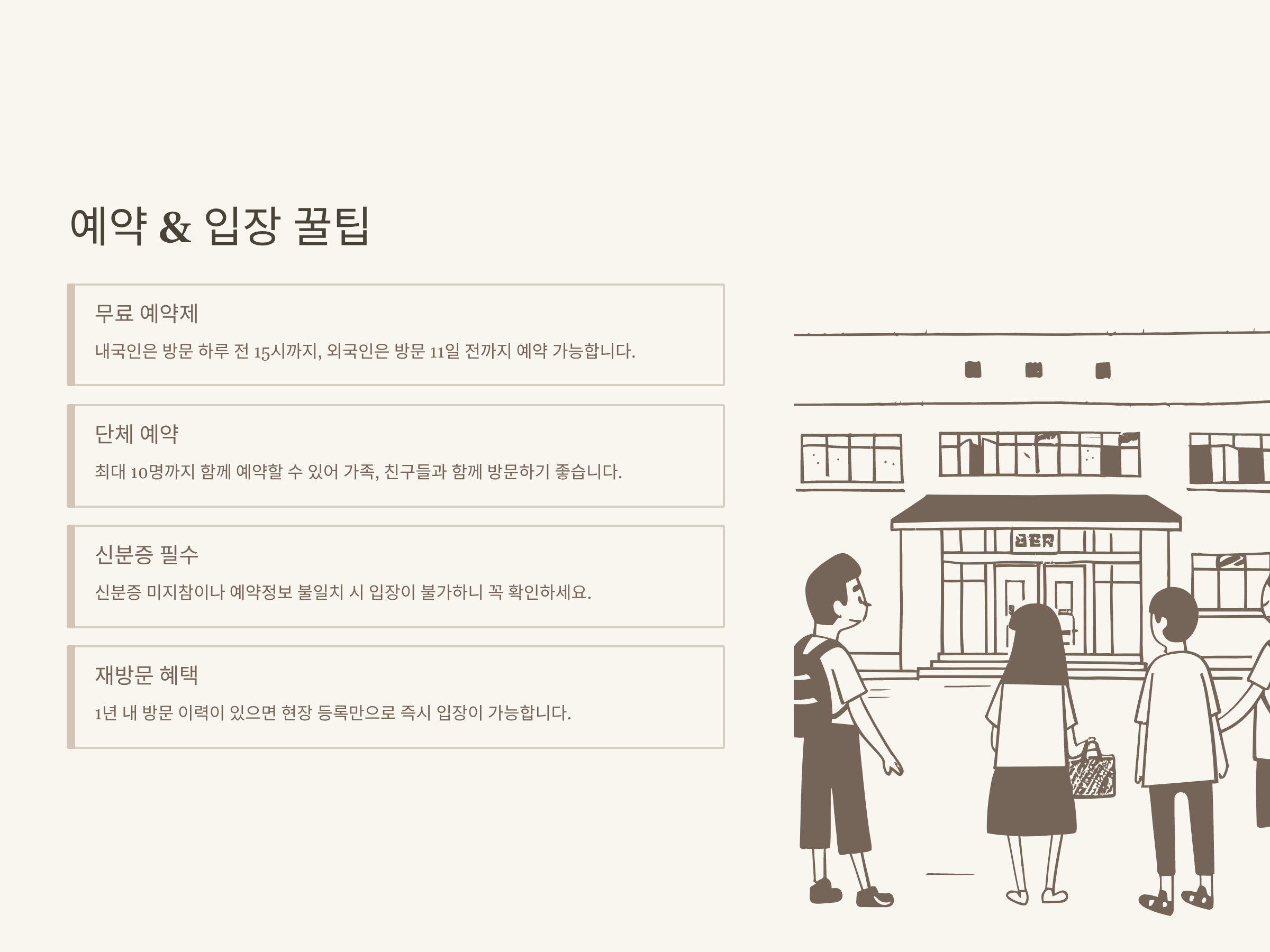 예약 없이 방문 시 현장 대기(1~2시간)가 필요해요. 시간 절약을 원하신다면 꼭 미리 예약을 추천합니다.