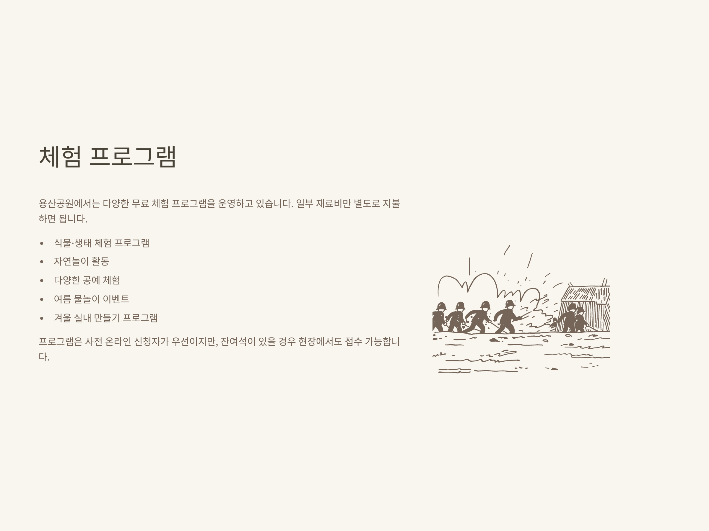 저도 지난 방문에서 아이와 자연놀이 체험을 했는데, 전문 강사님이 직접 진행해주셔서 교육적이고 알찬 시간이었습니다. 체험 안내와 예약은 공식 프로그램 페이지에서 최신 정보를 확인하세요.