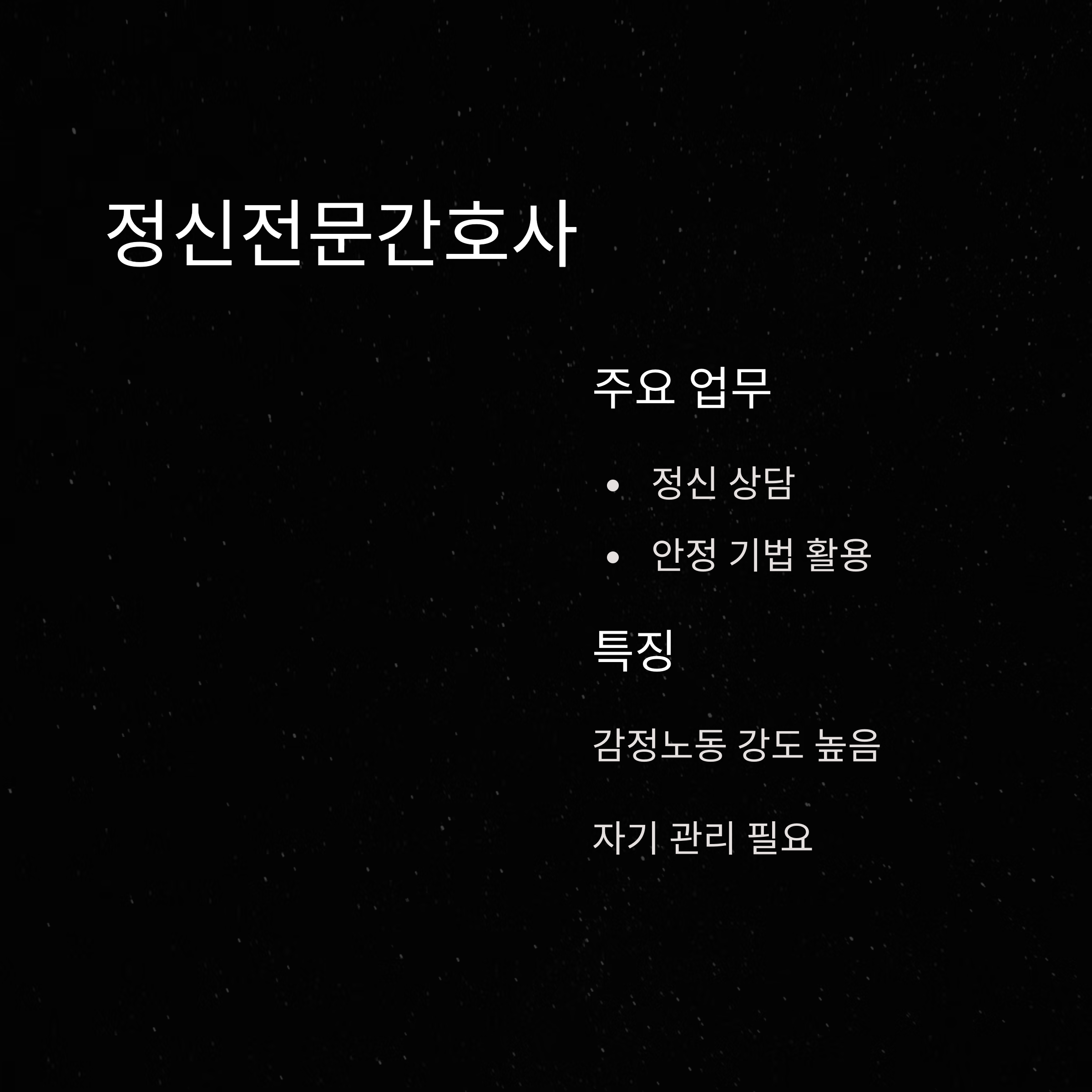 | 정신전문간호사 | 정신 평가·상담 | 심리적 안정 제공 |