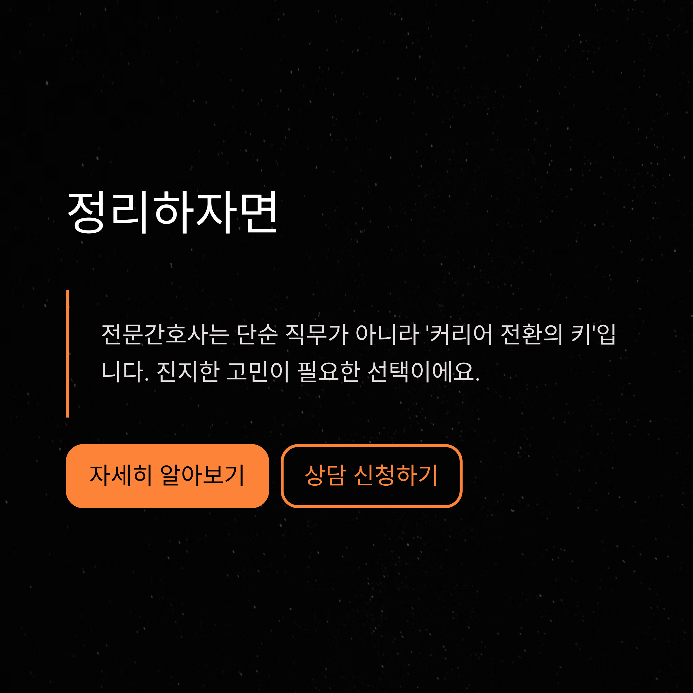 지속적인 성장과 커리어 상승을 원한다면 전문간호사 자격은 가장 강력한 도약대라는 생각이 들었습니다.