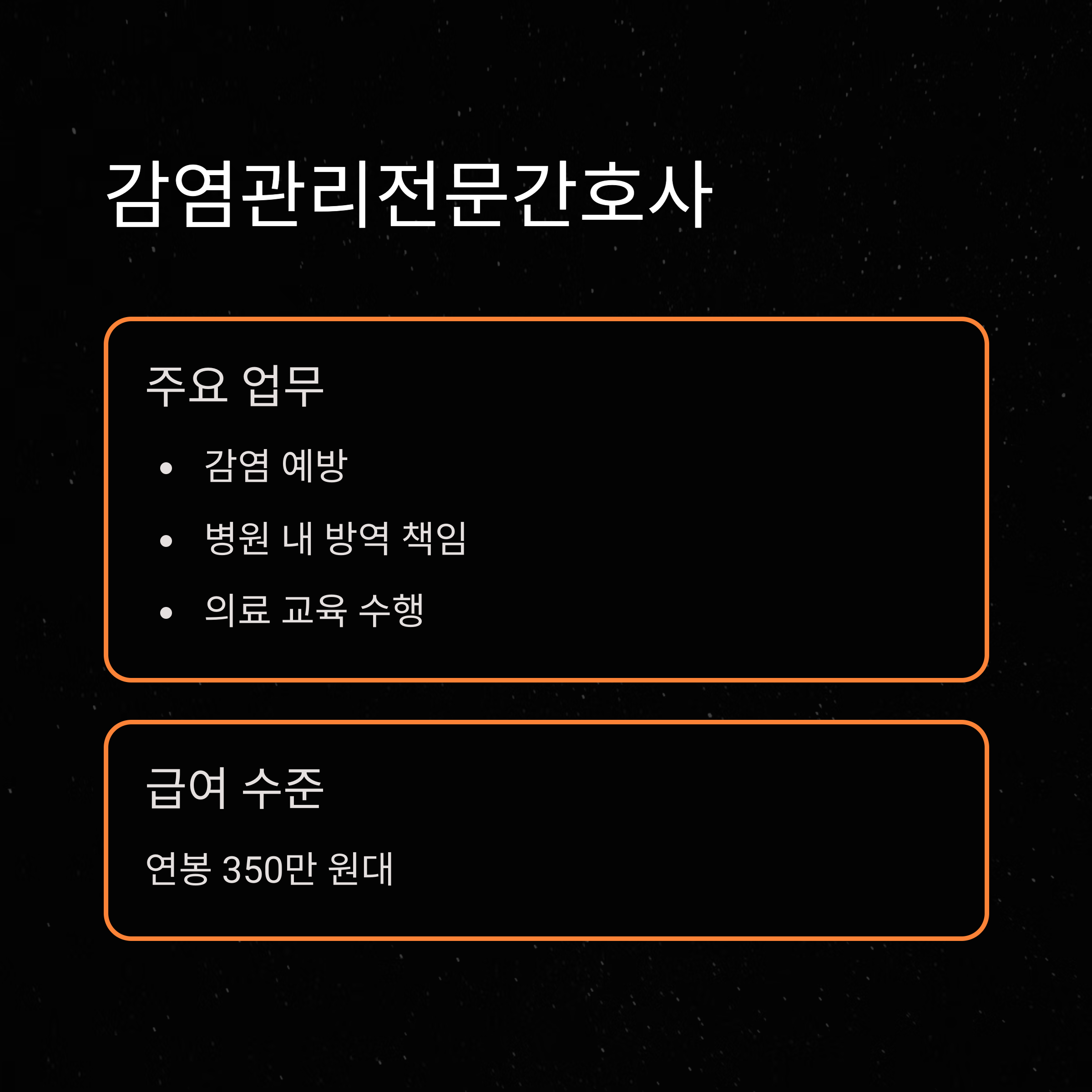 | 감염관리전문간호사 | 병원 감염 모니터링 | 관리·예방 중심 |