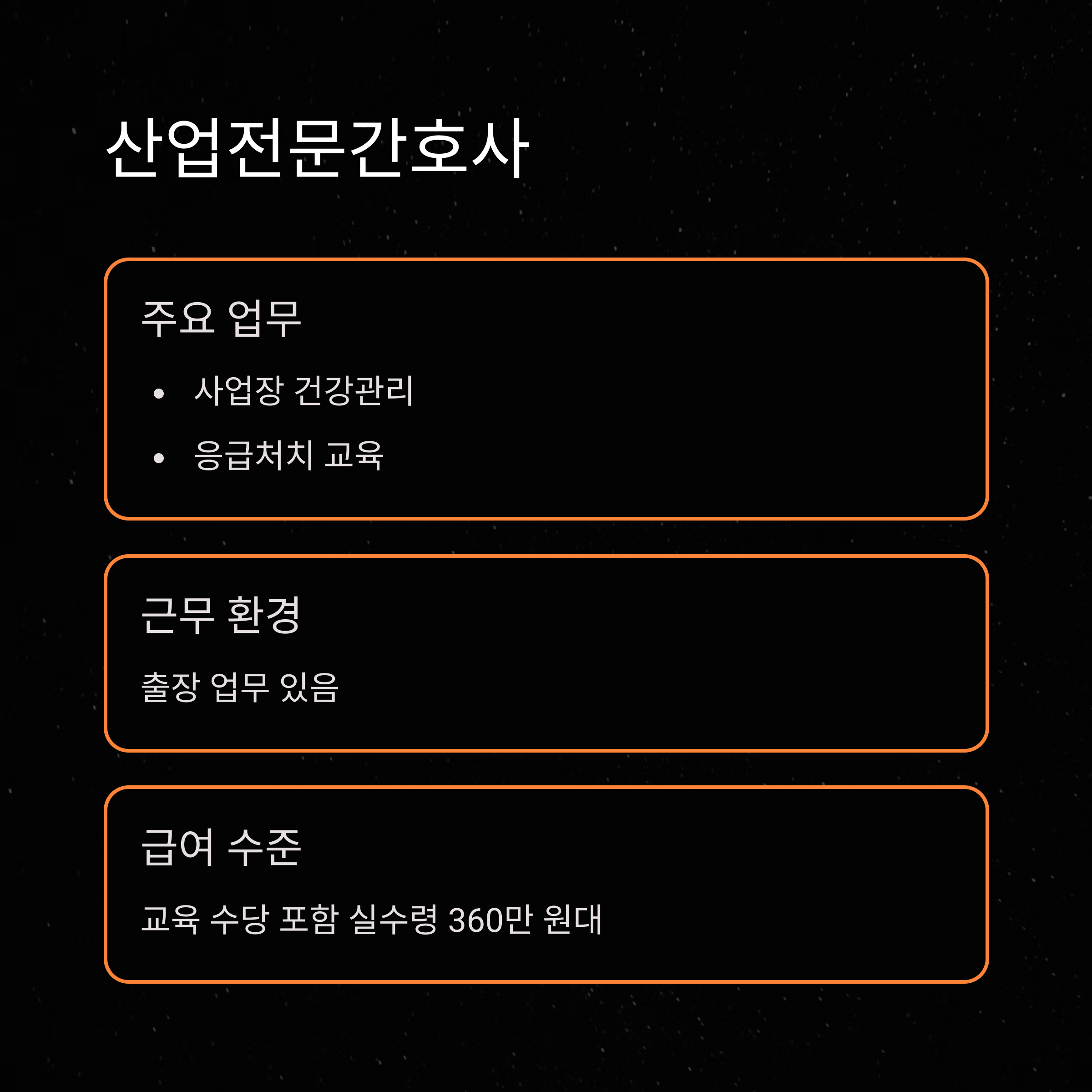 한국산업안전보건공단 통계를 보면 산업전문간호사 연봉은 실수령 320~360만 원대이며, 출장과 교육 진행 수당 등이 추가되었습니다.