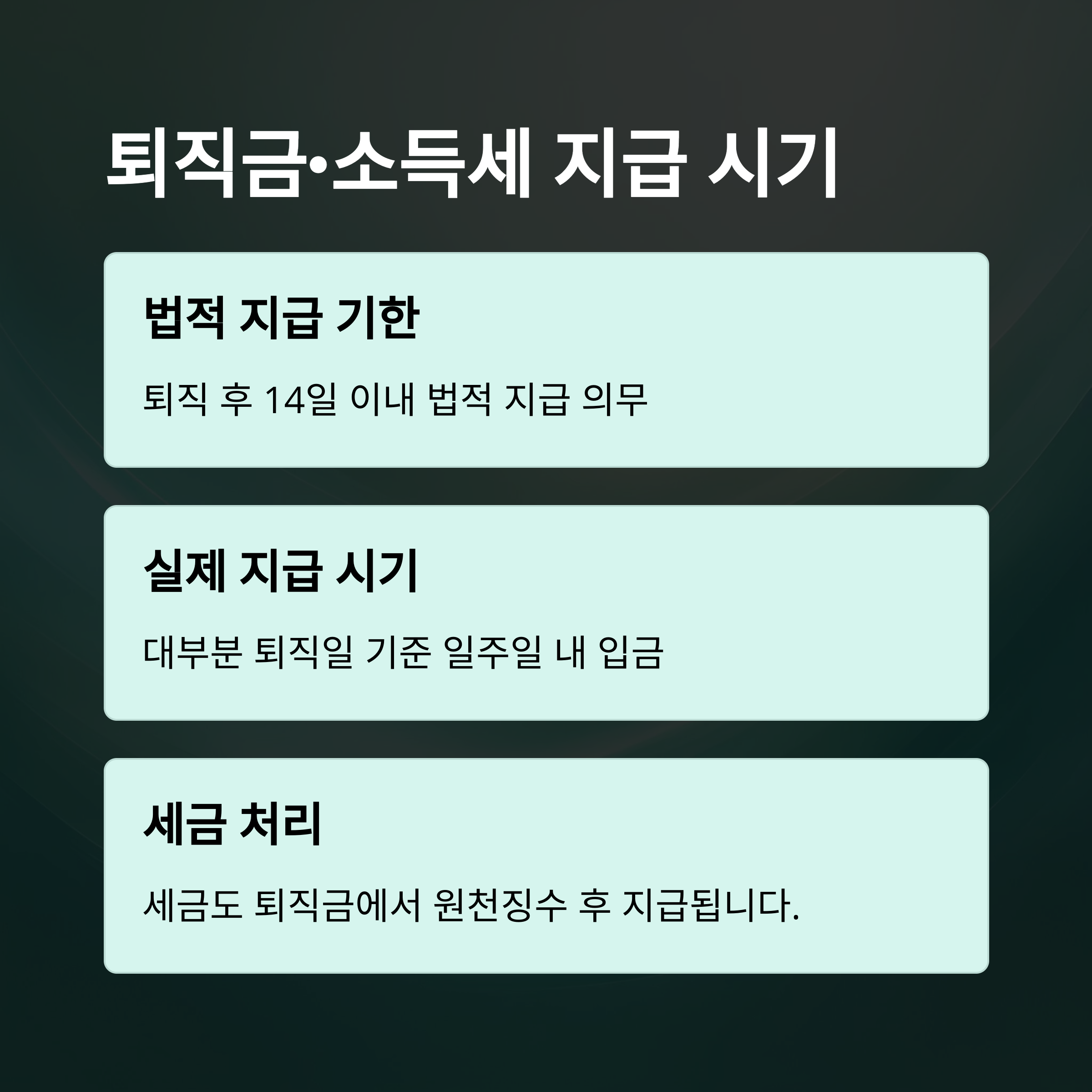 - 실제는 퇴직 후 3~7일 내 지급되는 사례가 많음