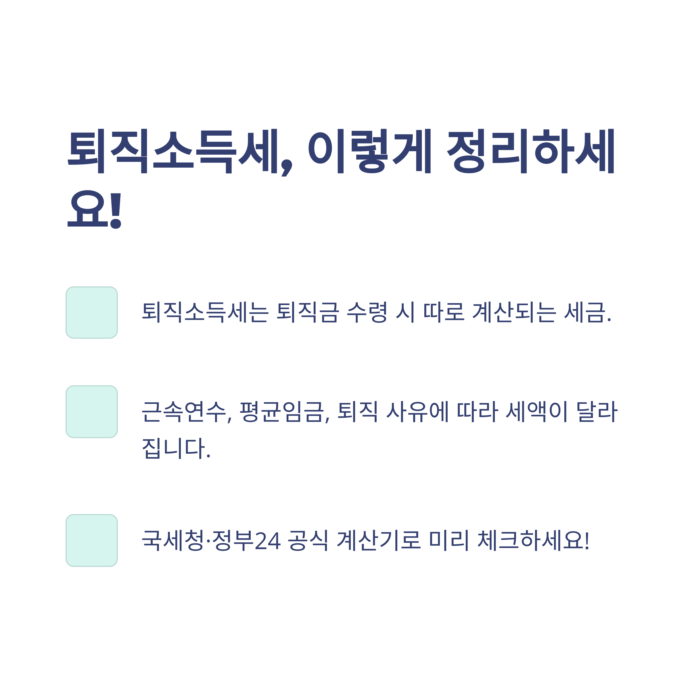 공식 퇴직소득 정산 절차는 국세청 및 정부24에서도 안내받을 수 있습니다.