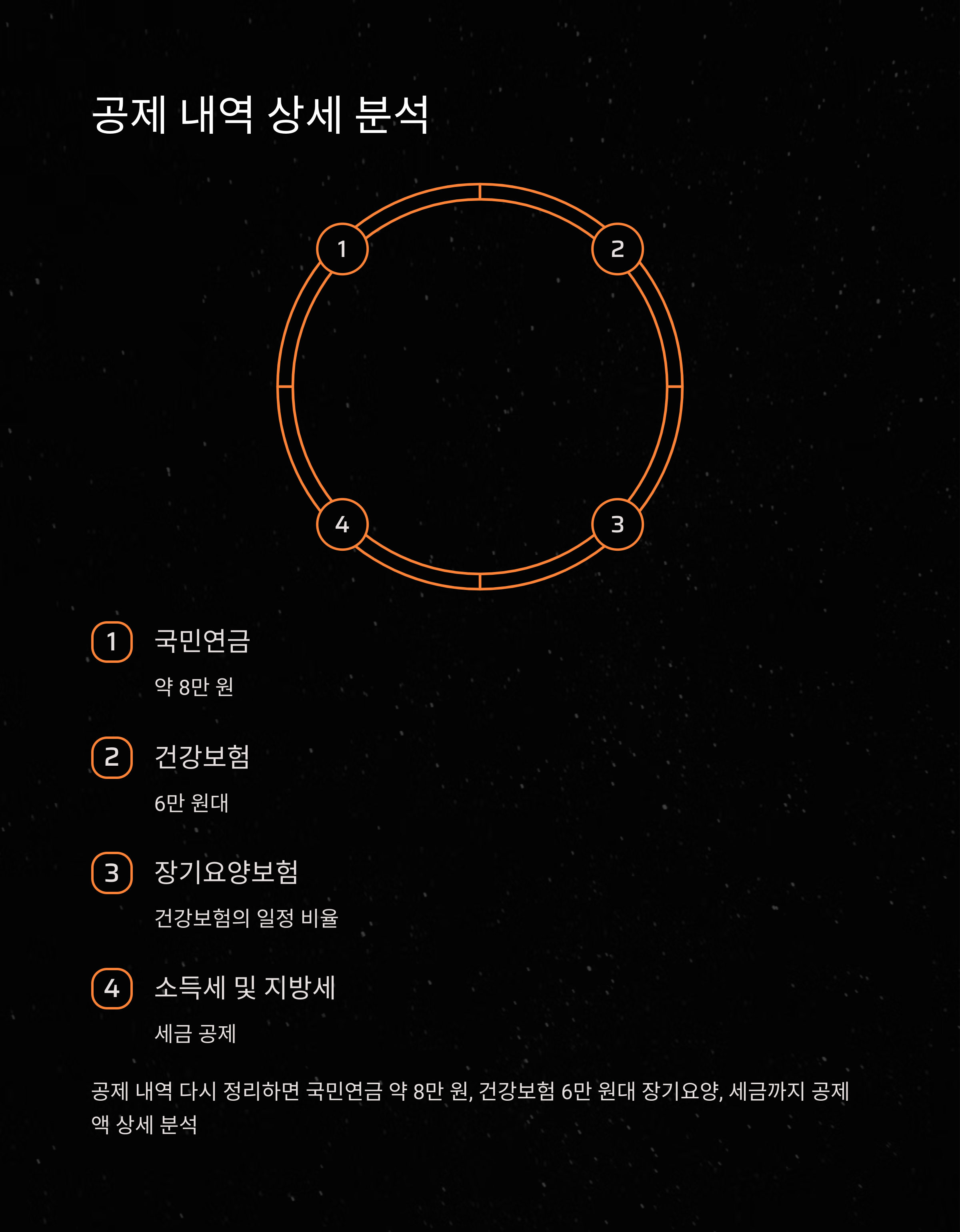 | 공제 항목 | 국민연금, 건강보험, 세금 등 |