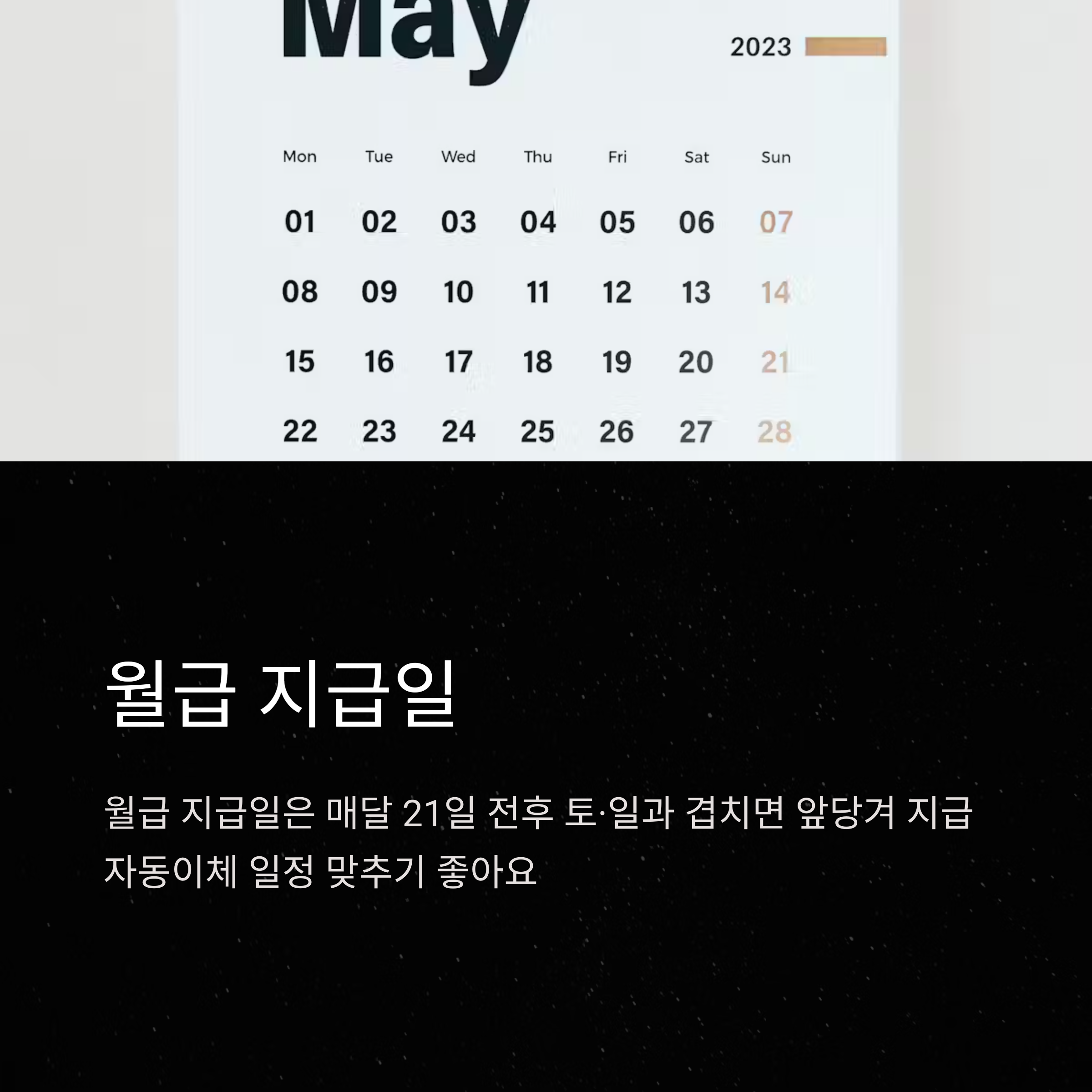 이 날짜를 기준으로 각종 공과금이나 자동이체 일정을 잡는 것이 좋습니다.