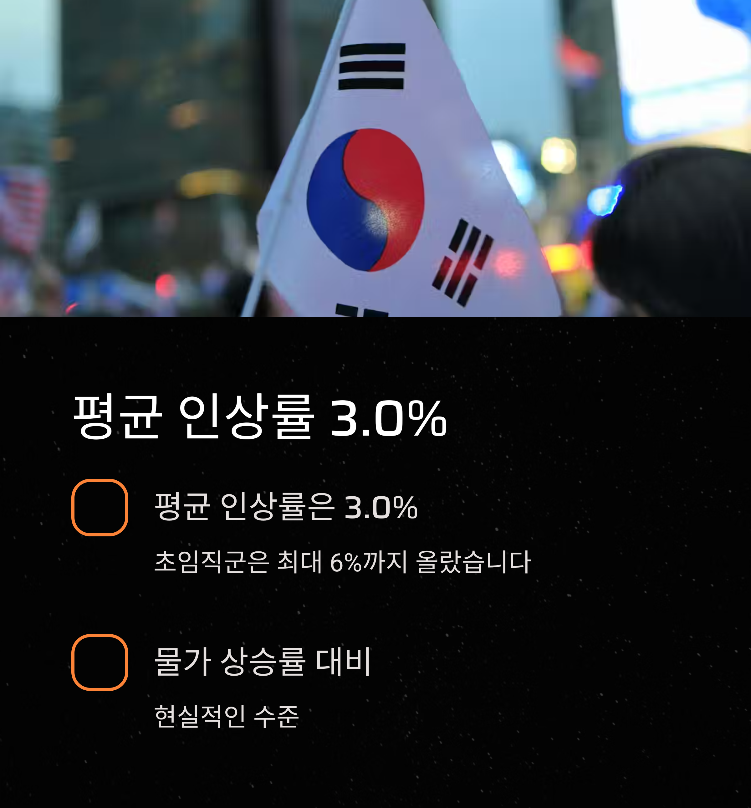 이처럼 매년 경제 상황과 예산 상황에 따라 인상률이 조정되며, 올해는 상대적으로 높은 인상률이 적용된 해라 볼 수 있습니다.
