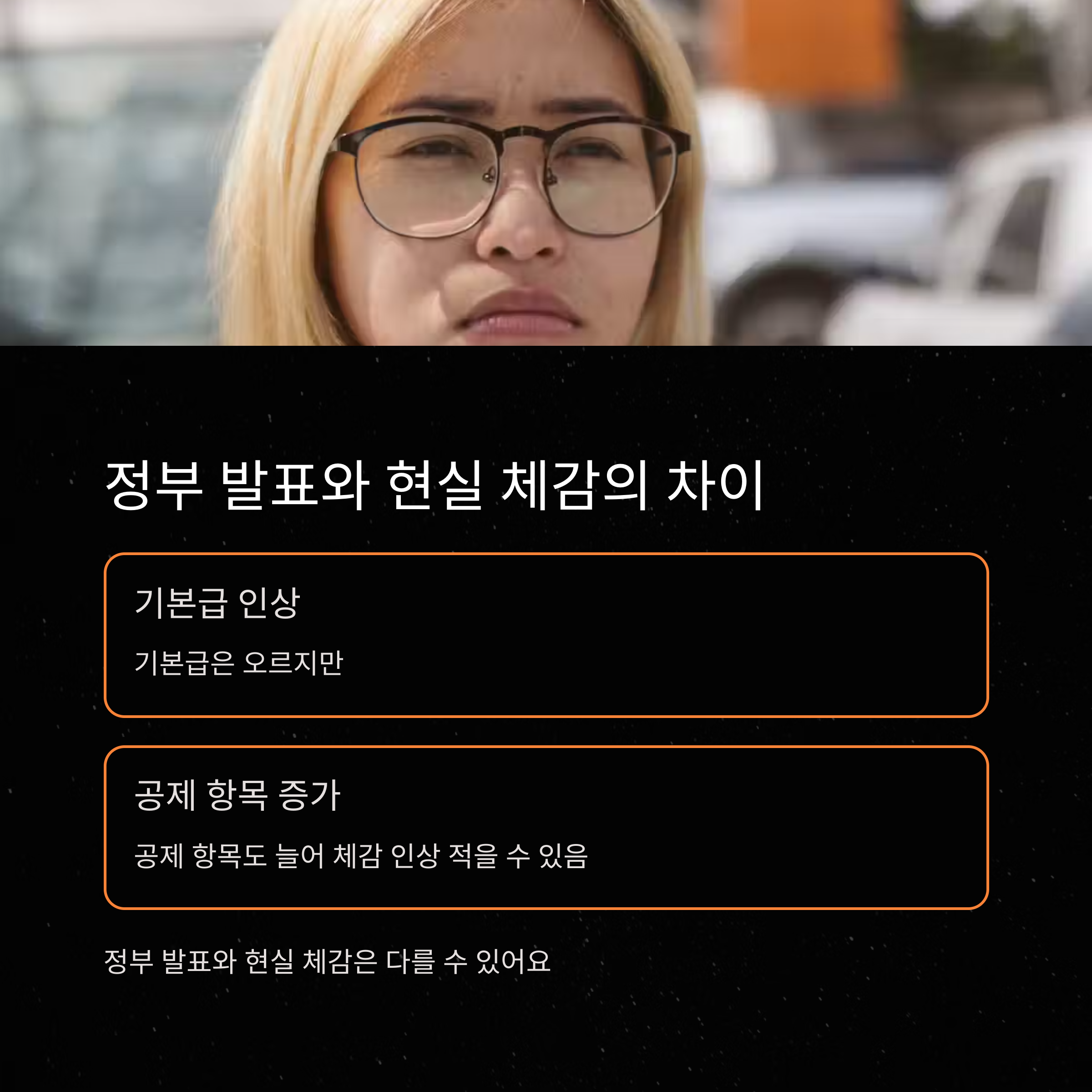 정부는 항상 '평균 인상률 3%'라고 발표하지만, 실제 수령하는 입장에서는 이 체감이 다를 수 있습니다. 저는 작년에도 “3% 오른다니까 한 6만원 정도 오르겠지” 했는데, 실수령 기준으로는 4만원 정도 오른 게 전부더라고요.